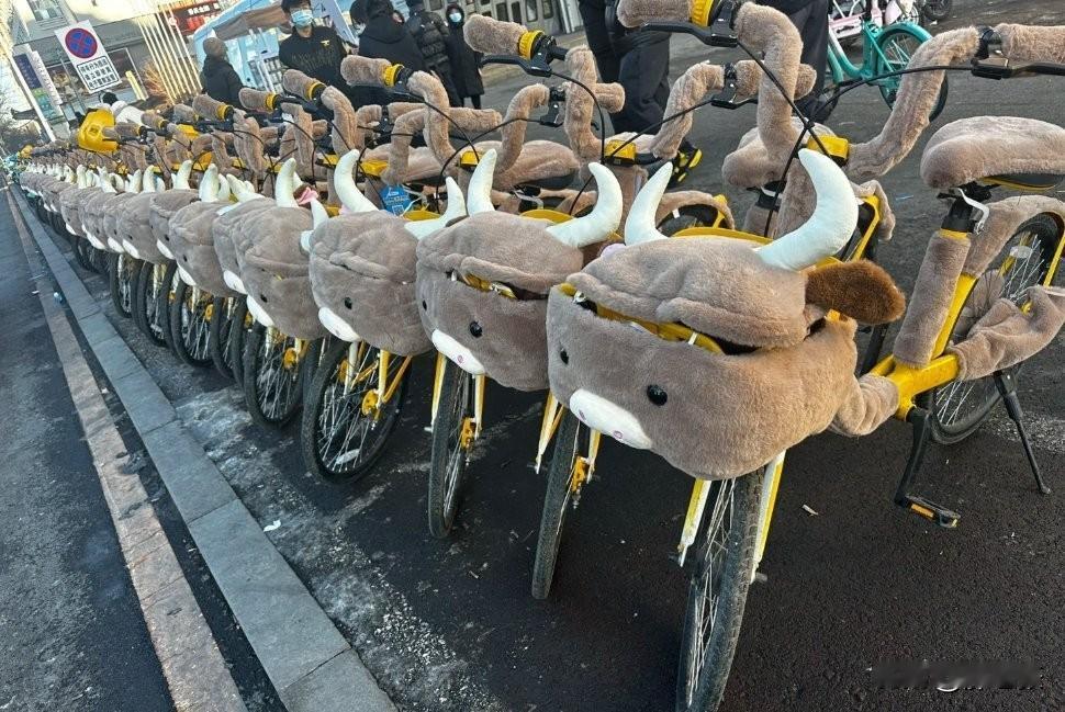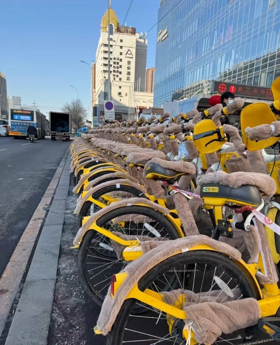 知道大东北冷,可是没想到共享单车都换新衣了,这算不算是新年新气象呢! 看着黄色小单车上面的衣服像是小牛,但是明天就是马年了,难道这是寓意“牛马”? 也对,只有牛马才会骑共享单车吧!不管怎么样祝大家新年快乐,新的一年有新气象! 今天夜里就是跨年夜了,也祝大家快快乐乐度过2025年的最后一天!