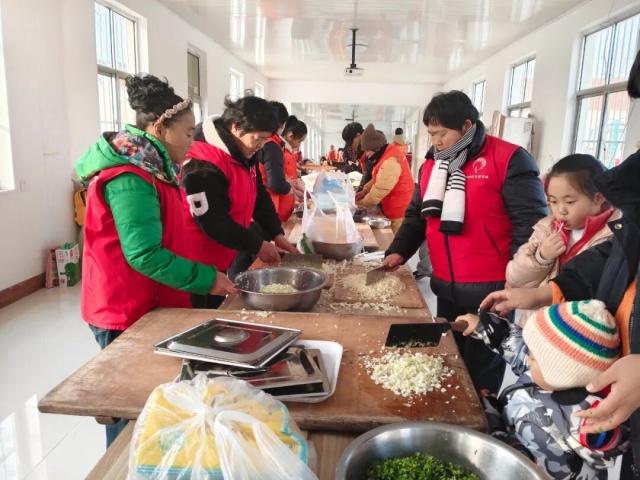 一双双稚嫩的小手跟着老党员认真比画,欢声笑语间,一个个饱满匀称的饺子排满案板,承载着满满的爱与敬意。饺子出锅后,老党员和孩子们一起将这份暖心“食”光,连同精心准备的米面油等生活物资,一同送到村内孤寡老人家中,传递和谐与友善的真谛。