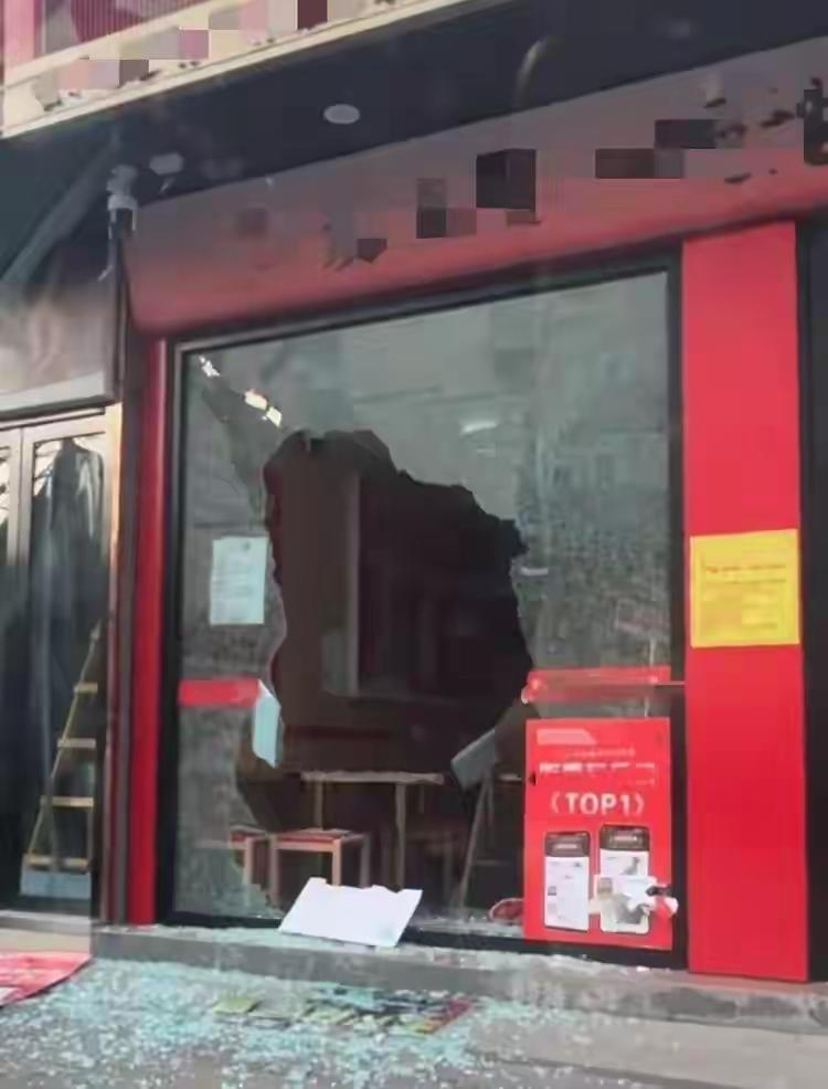 【太原深夜惊魂!餐馆落地窗遭神秘黑衣人铁锤猛砸,男子戴帽口罩手套全程未动财物】