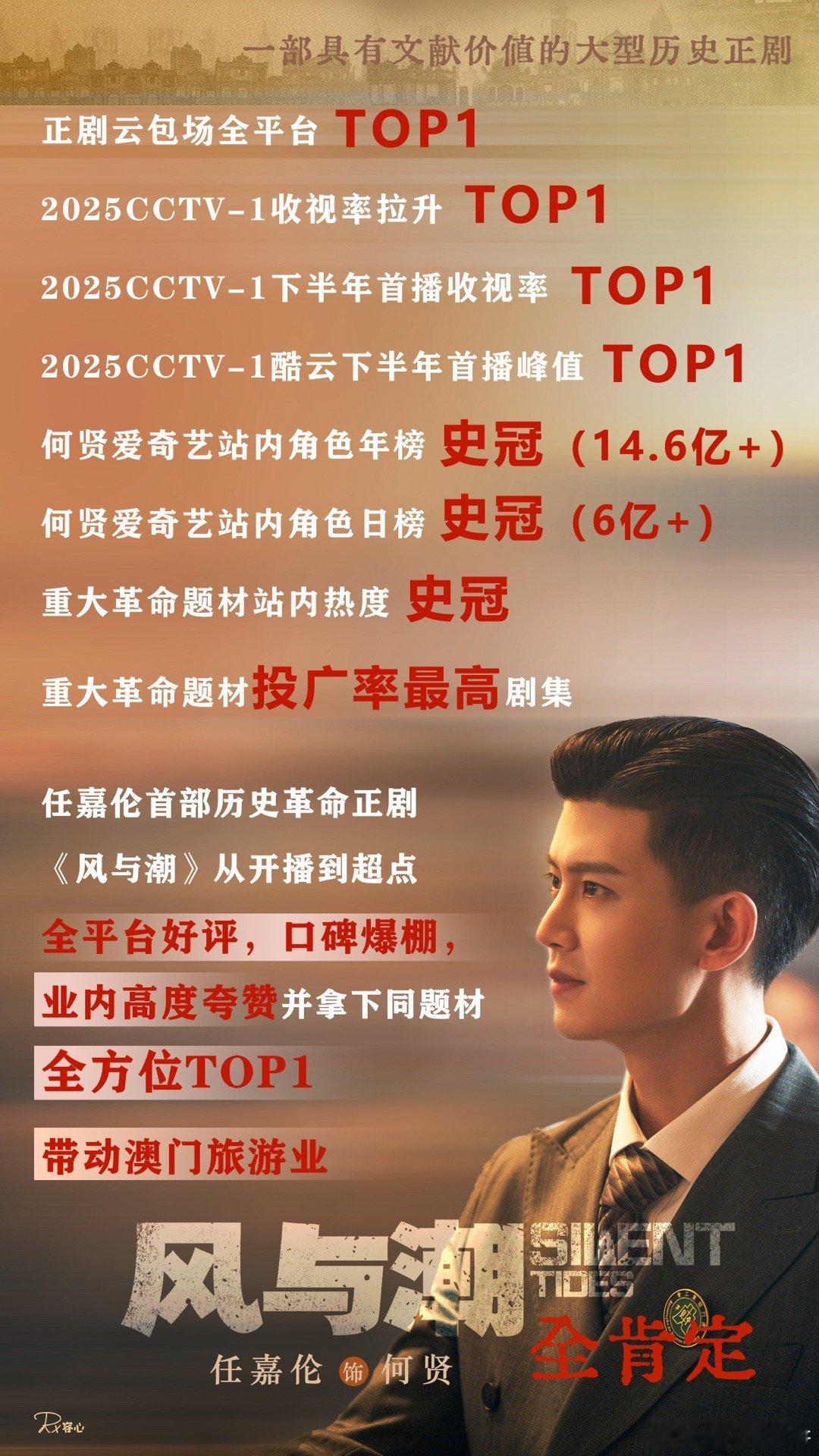 任嘉伦又多了一部代表作 央视《风与潮》成任嘉伦新代表作!饰演原型人物何贤细腻传神,精准把握隐忍宠辱不惊特质,收视登顶实绩亮眼,扛剧能力与可塑性双认证!