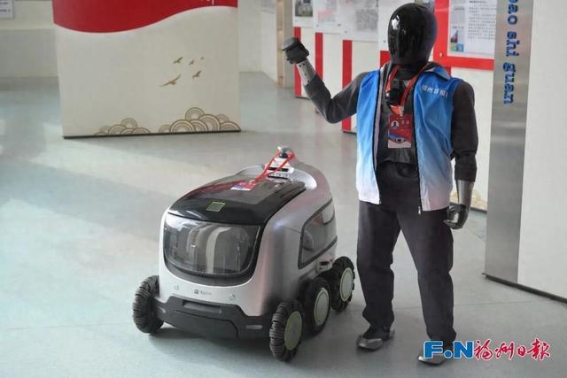 “我的名字叫‘艾白’,号‘四到先生’,‘艾白’福州话意思是明白了,‘四到’就是不叫不到,随叫随到,说到做到,服务周到……”在挂上工作牌正式成为报社员工后,艾白先来个开场自我介绍。随后,艾白和溜溜两位“新员工”配合默契、无缝对接,“艾白”当起迎宾礼仪,带领着众人步入福州日报社报史馆,紧接着将讲解的接力棒交给“溜溜”。“溜溜”一边领众人参观福州日报社报史馆,一边为大家讲解,有模有样扮演着讲解员的角色。