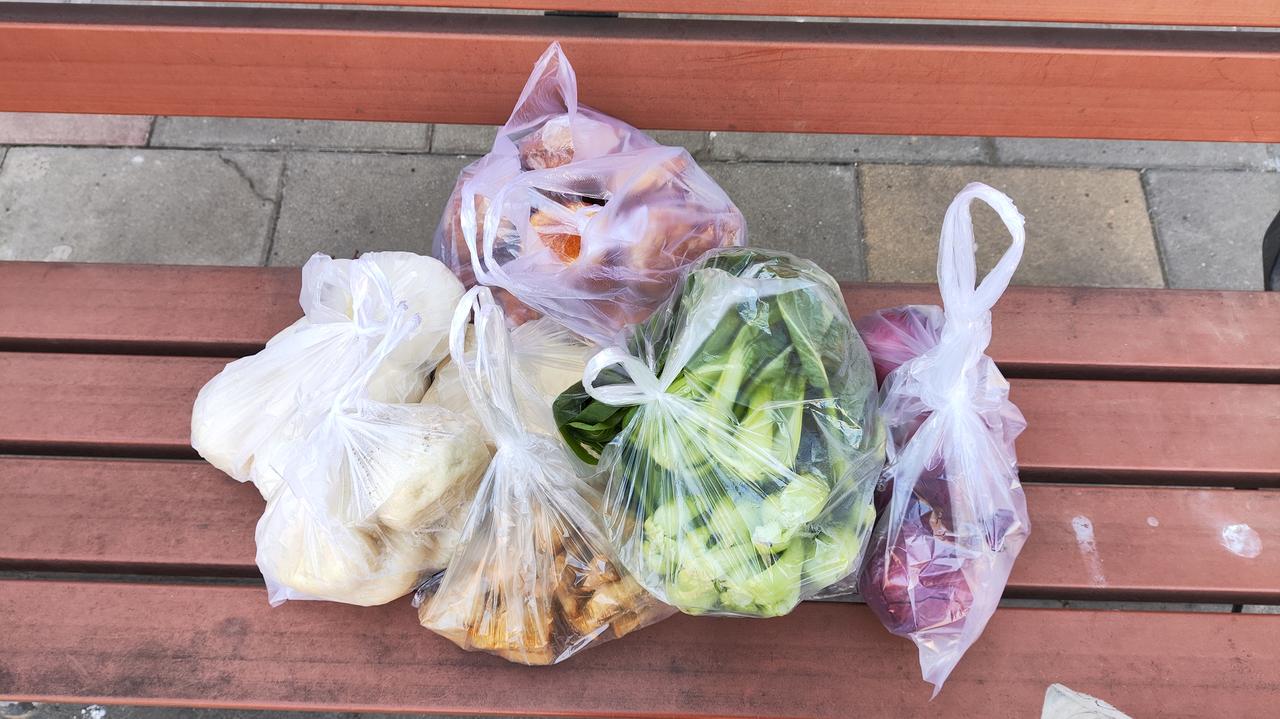 我都是走路去买菜,今天买点这个,明天买点那个,一天买不完…… 前天买的白菜,本来我就想买两颗,怕卖菜大姐嫌我买的少,我就说要个3,4颗吧。 她给我装哐哐往里装,装了一袋儿,我也不好意思说少装点。 这一袋子白菜10块钱,这个是小点的白菜,不是那种大的,可能比大的要贵一半的钱,这个小白菜1块5一斤。 前天还买了鸡蛋和香蕉。 今天又去买菜。 婆婆的蛋糕吃完了,也买点蛋糕。 买了点小油菜,豆腐,豆泡。 每次买到两只手拎不了了,就不买了。 还想买白萝卜,土豆,胡萝卜,等着明后天再去买吧。