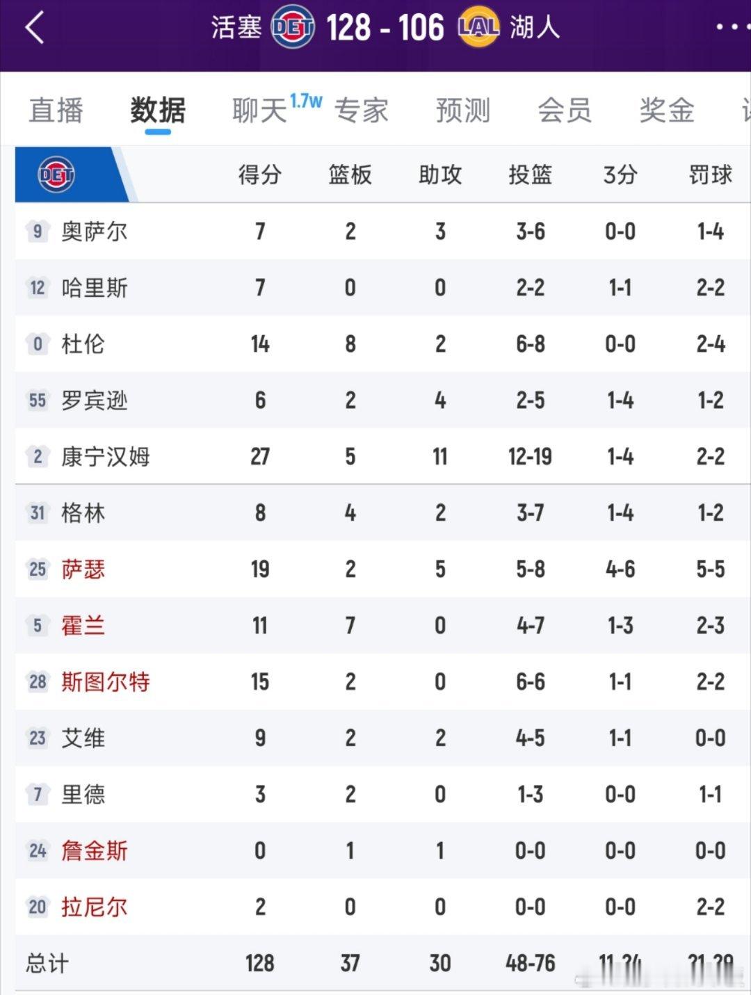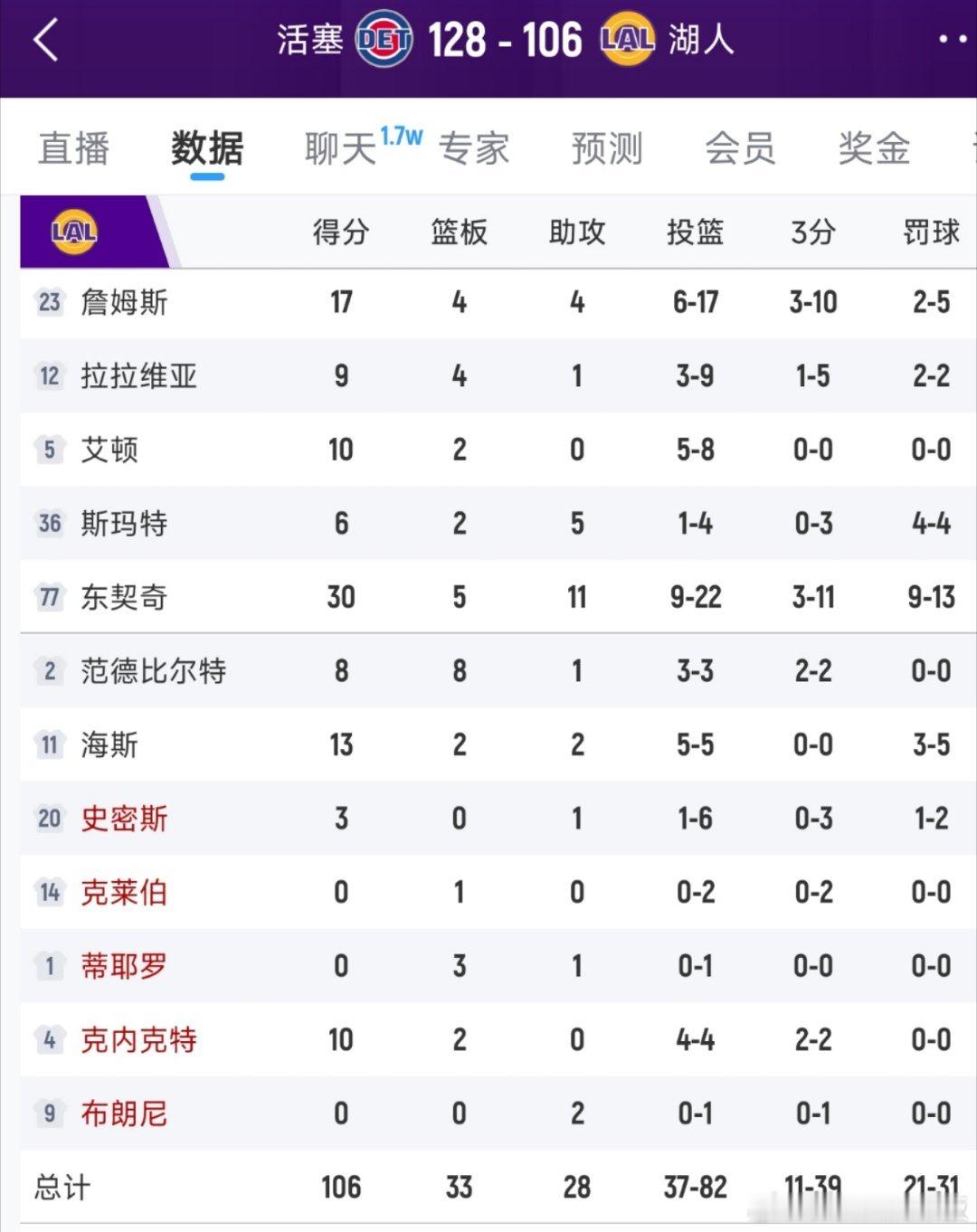 脸都不要了[捂脸哭],湖人106-128惨败活塞,这3位球员必须为输球负责!
