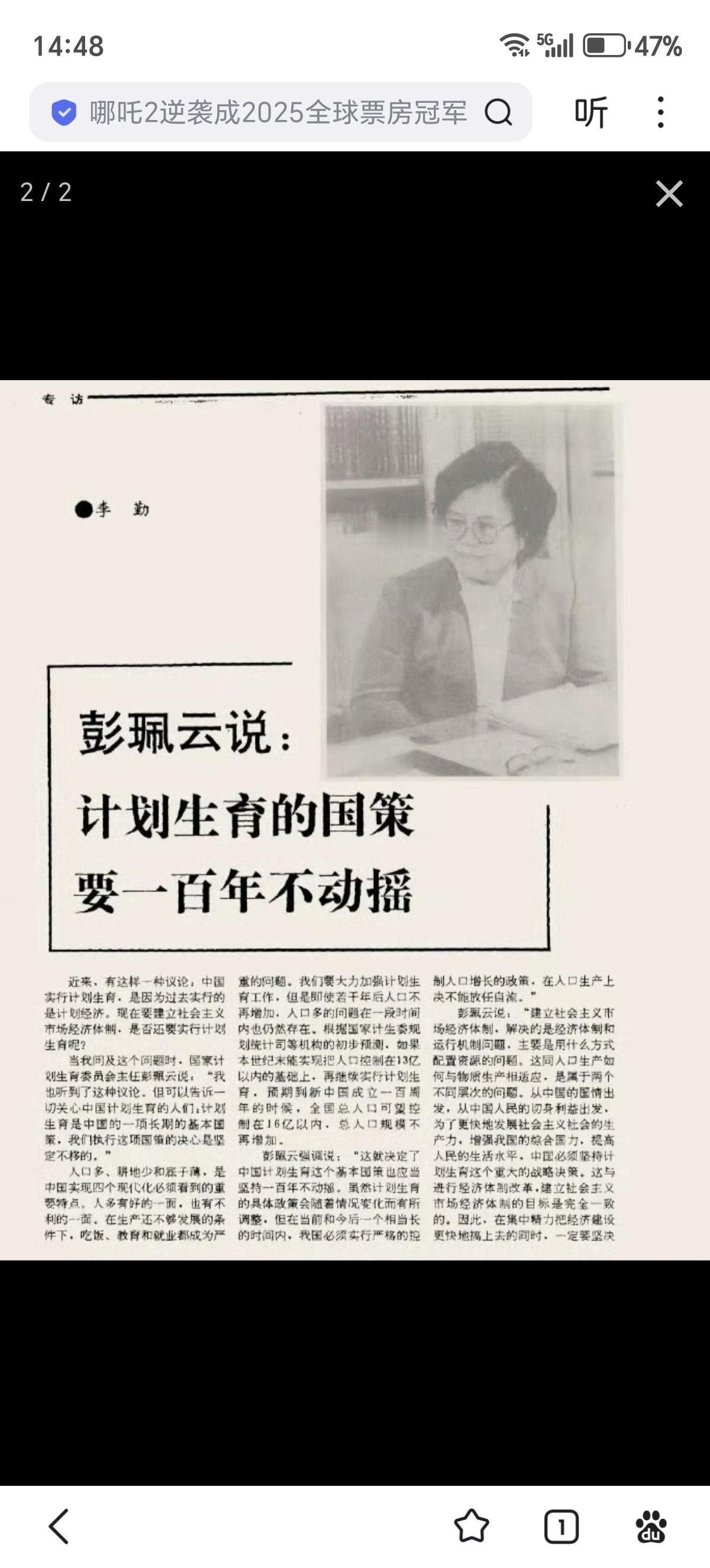 彭珮云逝世。1988年至1998年任国家计划生育委员会主任,为中国人口计划生育事