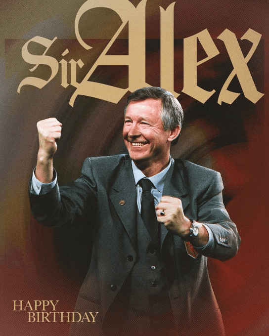 曼联官方在社交媒体上晒出了弗格森爵士的海报,并配文写道:“祝亚历克斯-弗格森爵士84岁生日快乐”