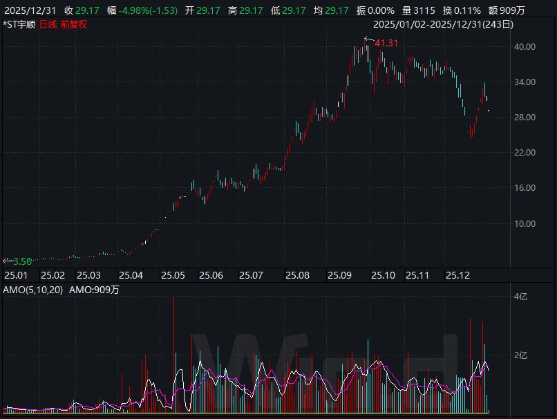 2025年十大牛股中,位居第4至第10位的个股依次是:*ST亚振、胜宏科技、飞沃科技、菲林格尔、鼎泰高科、恒勃股份、顺灏股份,全年涨幅均超500%。