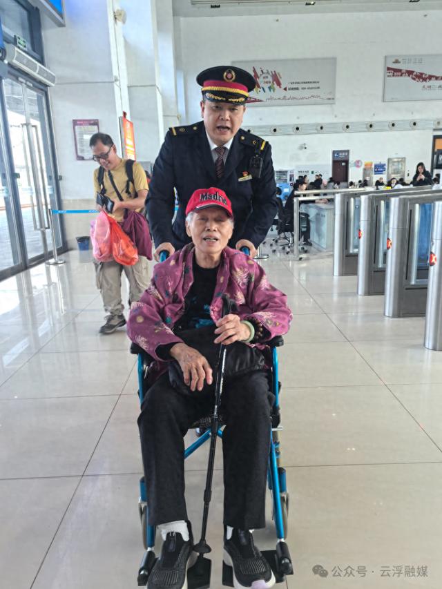 云浮东站服务队护送老人进站