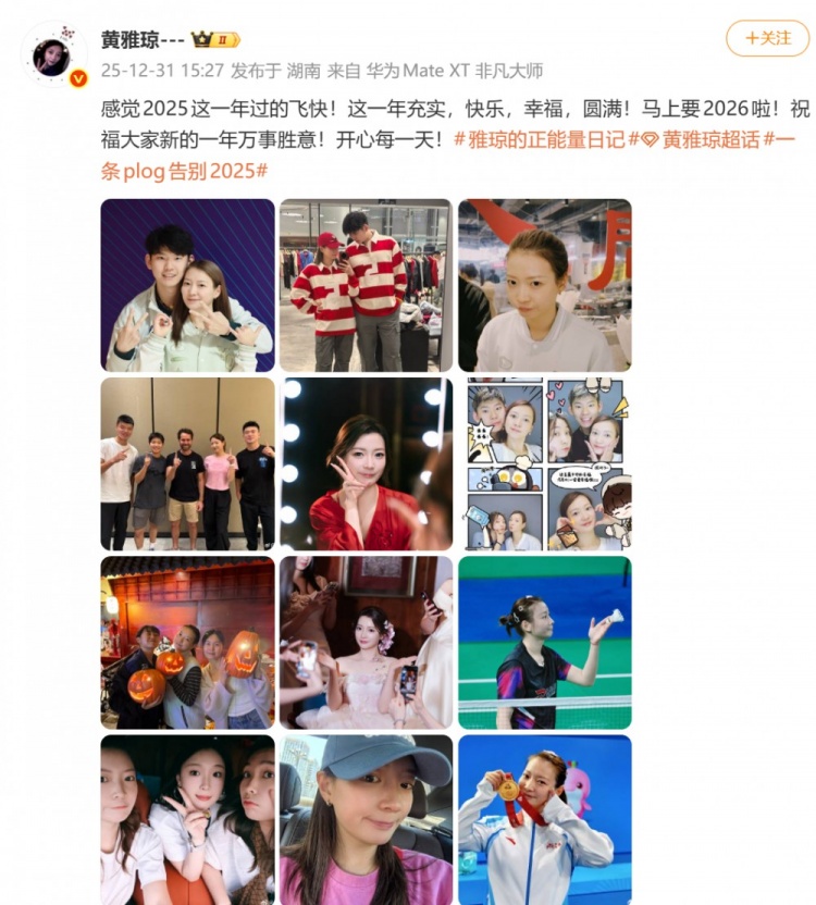 黄雅琼:感觉2025这一年过的飞快!这一年充实,快乐,幸福,圆满!马上要2026啦!祝福大家新的一年万事胜意!开心每一天!