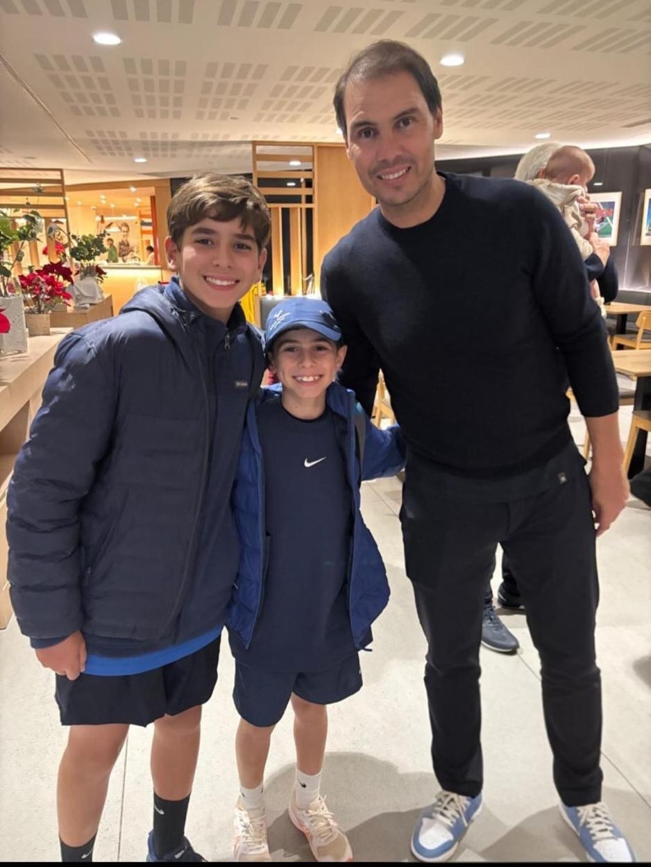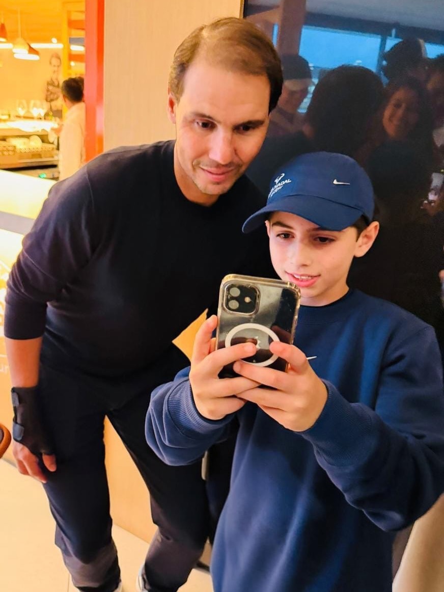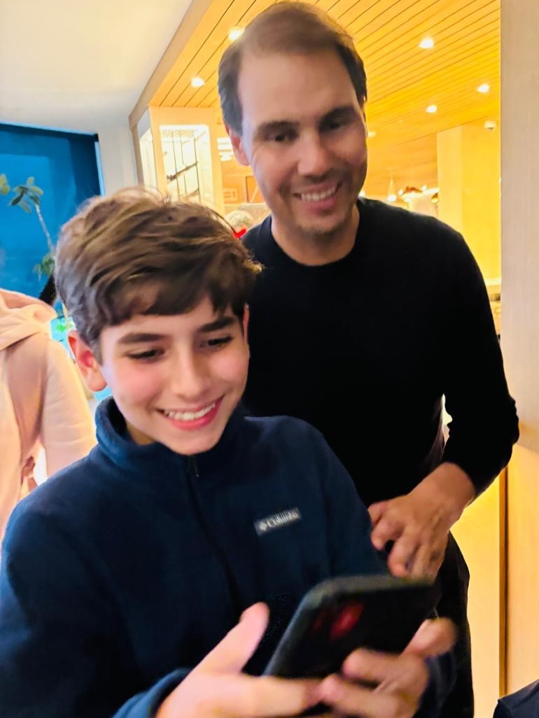 Instagram网友leonmenin在纳达尔网校幸运地遇到了豆校长,然后就开心地得到了和纳达尔、梅花小姐姐以及托尼叔叔的合影“全家桶”,太幸福啦Vamos Rafa