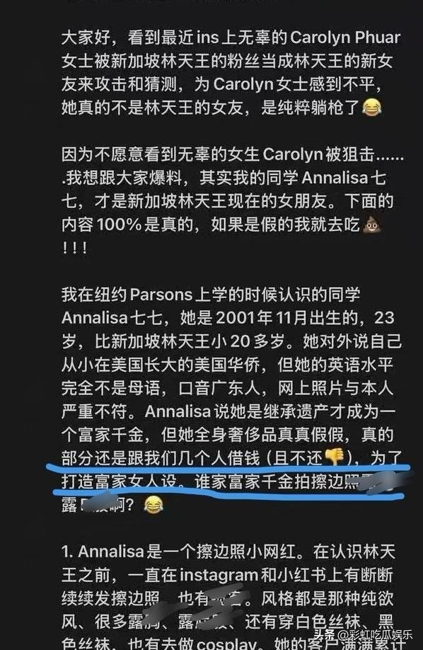 越扒越有!七七同学发文她根本不是富家女,而是cb小网红而已。 林俊杰十年粉丝宣布脱粉,已经花了10万,还是接受不了喜欢了十年的偶像和cb女网红谈恋爱。 究竟是真的还是见不得别人好?偶像也是人,谈恋爱结婚都很正常,cb女网红怎么了?cb女网红也要找对象,也要结婚生子啊。 可惜他是林俊杰,跨年想公布恋情也不省心,心疼他。