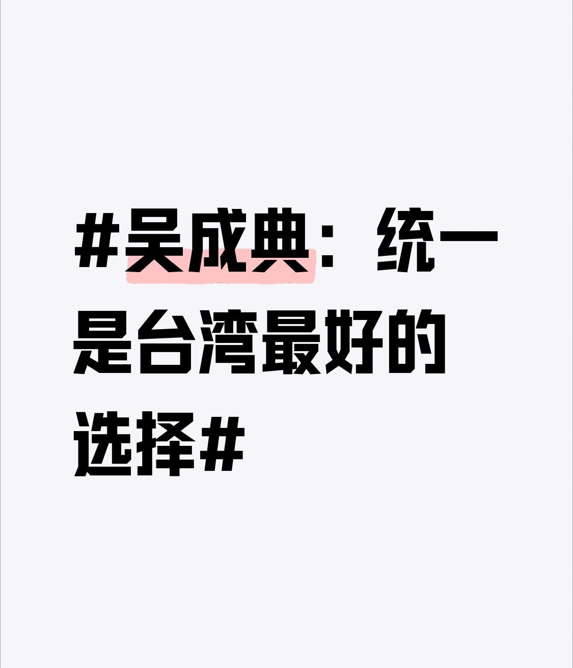 吴成典:统一是台湾最好的选择 新党主席吴成典说得太对了,统一确实是台湾最好的选择。如今台海局势紧张,“台独”必然引战,这是国际共识,也让台湾民众忧心忡忡。民进党当局搞“绿色威权”和对抗路线,让两岸关系不断恶化。 但和平统一能让人民安居乐业,台湾也能在世界舞台上进退有据。新党主张重启协商、恢复交流,这能保障台胞权益、降低战争风险。多数两岸民众都保持着清醒,明白“台独”是绝路。历史的大势是统一,携手合作实现民族复兴,才是正途。