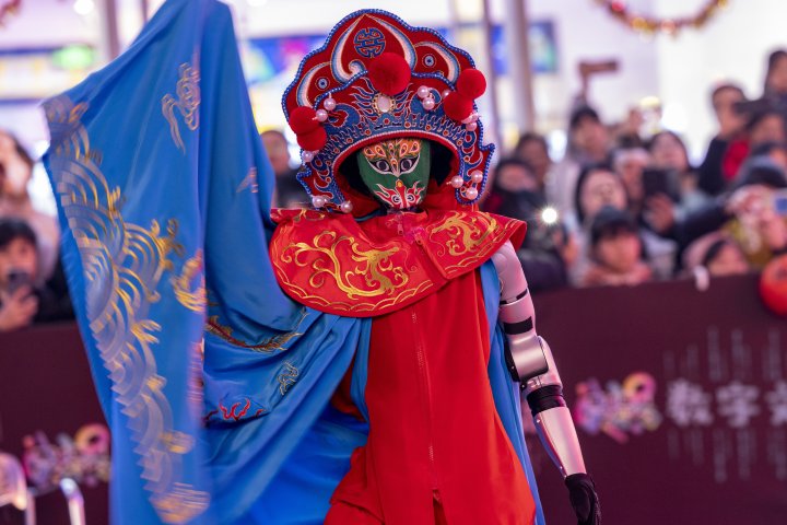▲2月12日,宇树机器人春晚走红之后,许多市民和游客在元宵节专程到杭州文三数字生活街区观看机器人表演。