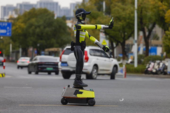 ▲2025年的最后一天,杭州滨江区滨盛路长河路口,AI交通管理机器人正在管理交通秩序。它由杭州交警牵头,联合本土科技企业中控信息研发而成。目前,升级版本已进入最后的调试阶段,将于近期上岗实习,实现多机协同执勤。