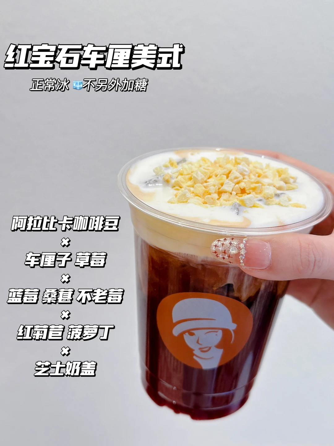 阿拉比卡咖啡豆×车厘子×草莓×石榴×蓝莓×桑葚×不老莓×红菊苣×菠萝丁×芝士奶盖