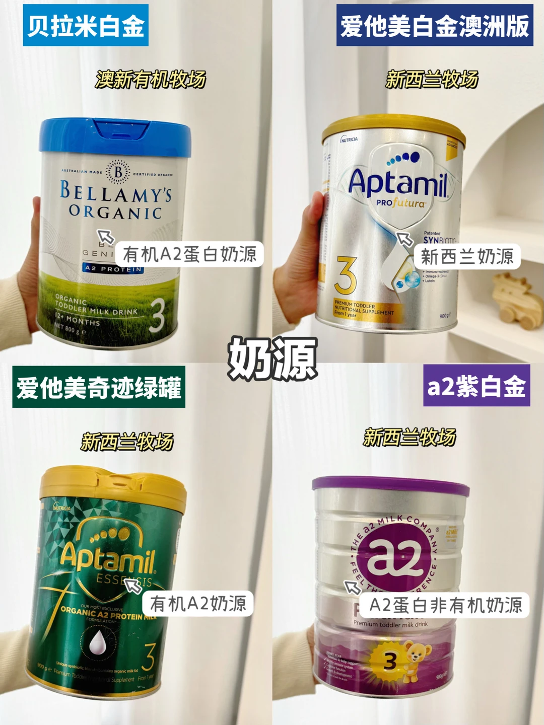 ✅奶源:建议选择纯净有机的、A2蛋白的奶源,A2蛋白分子更小、更亲和,能温和呵护刚恢复的肚肚