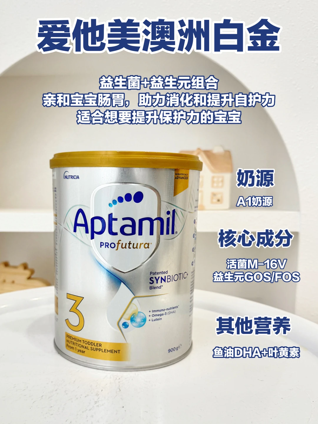 爱他美澳洲白金:双倍DHA、优量叶黄素和OPO结构脂,营养密度高
