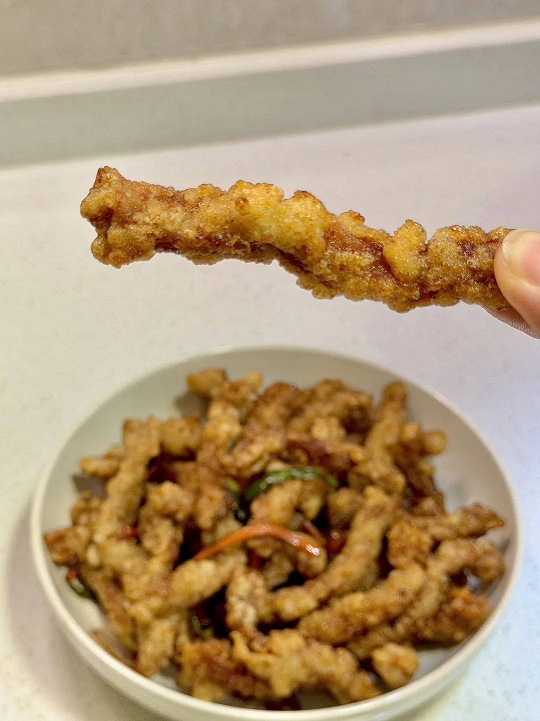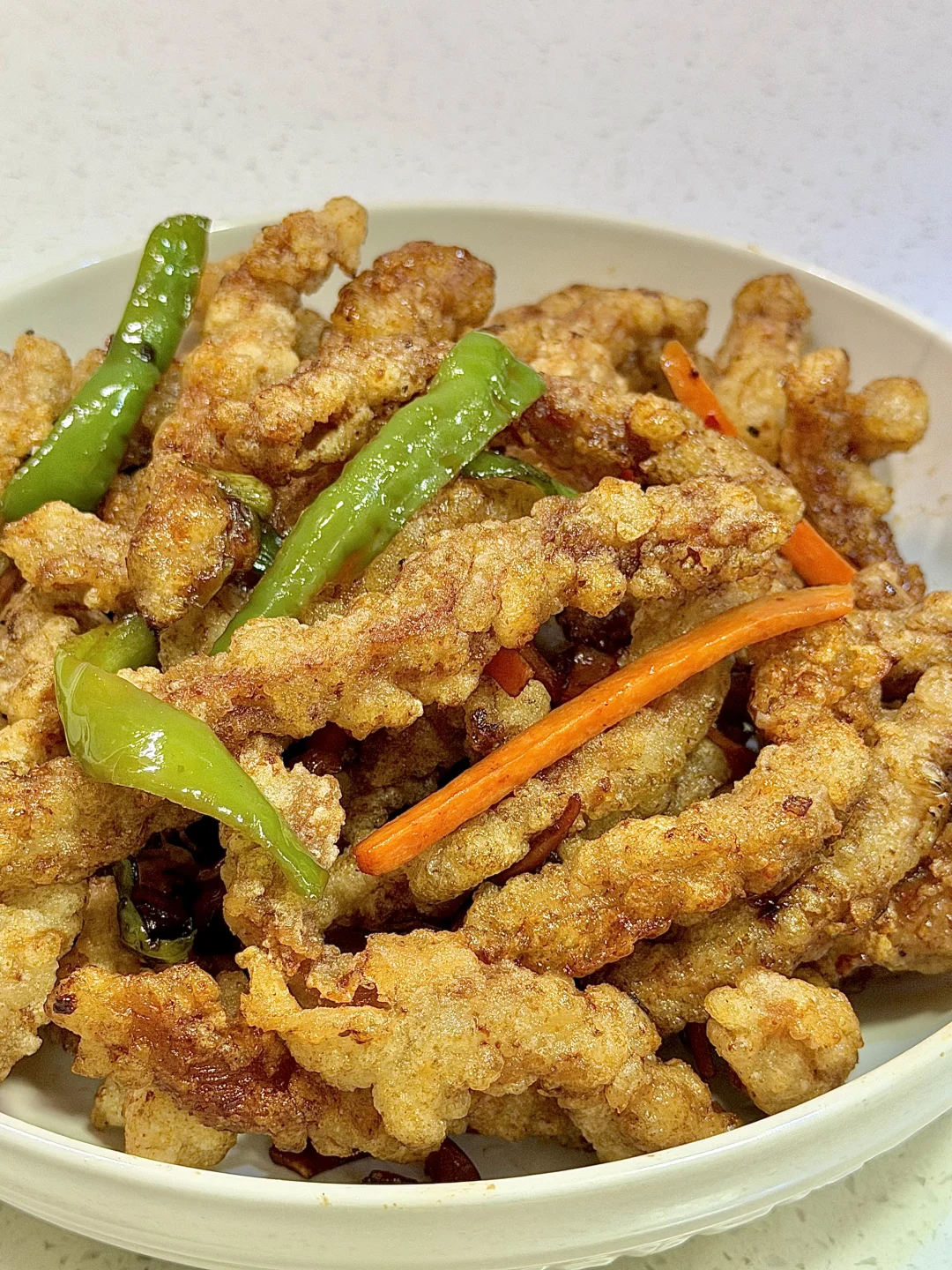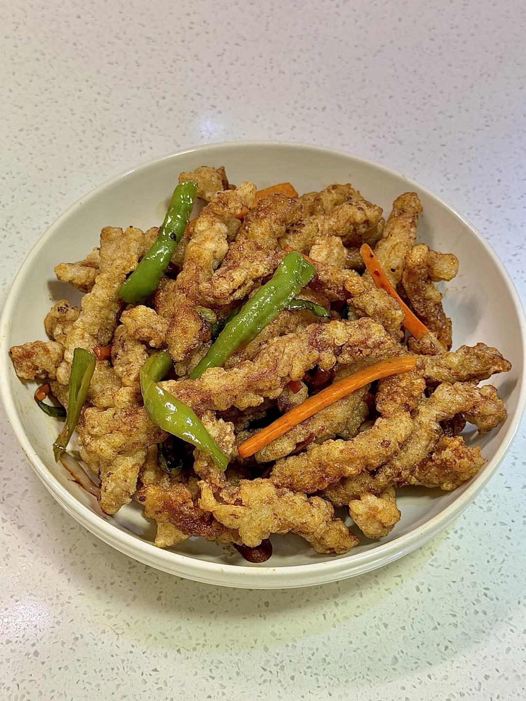 今日份美食分享: 焦烧肉条 . 食材:里脊肉 土豆淀粉 胡萝卜 青椒 酱汁(如图) 做法如图上⬆️ . 因为上次做的不太成功,今天又做了一次焦烧肉条 比上回的还好吃😋 焦烧肉条是咸口的肉条,锅包肉是甜酸口的肉片 溜肉段是咸口的肉块~ 还是有点区别的😂