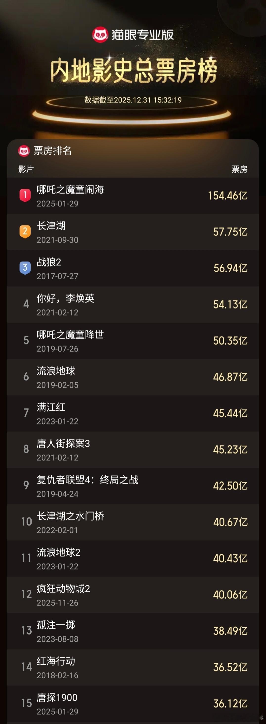 疯狂动物城2票房破40亿 2025年最后一天,《疯狂动物城2》中国内地票房突破40亿元,即将陆续超越《流浪地球2》和《长津湖之水门桥》进入内地影史总票房榜前十,最终总票房将超越《复仇者联盟4:终局之战》的42.5亿元内地影史外片票房纪录,成为外国影片票房第一。疯狂动物城2疯狂动物城2票房