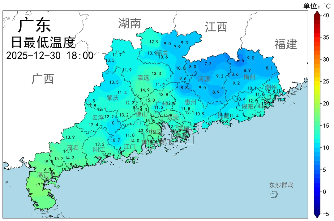 预估,最低温将出现在1月2日~3日的“早~晚时分”(粤北最低温-2~1度徘徊,山区最低温-5度左右,沿海地区最低温在5~8度徘徊,如:广州最低仅剩5度,深圳、潮汕、粤西最低8度),白天虽然有阳光增温,略显温暖,但早晚相当寒冷,⚠️注意穿冬装!建议减少出行,以防感冒😷。