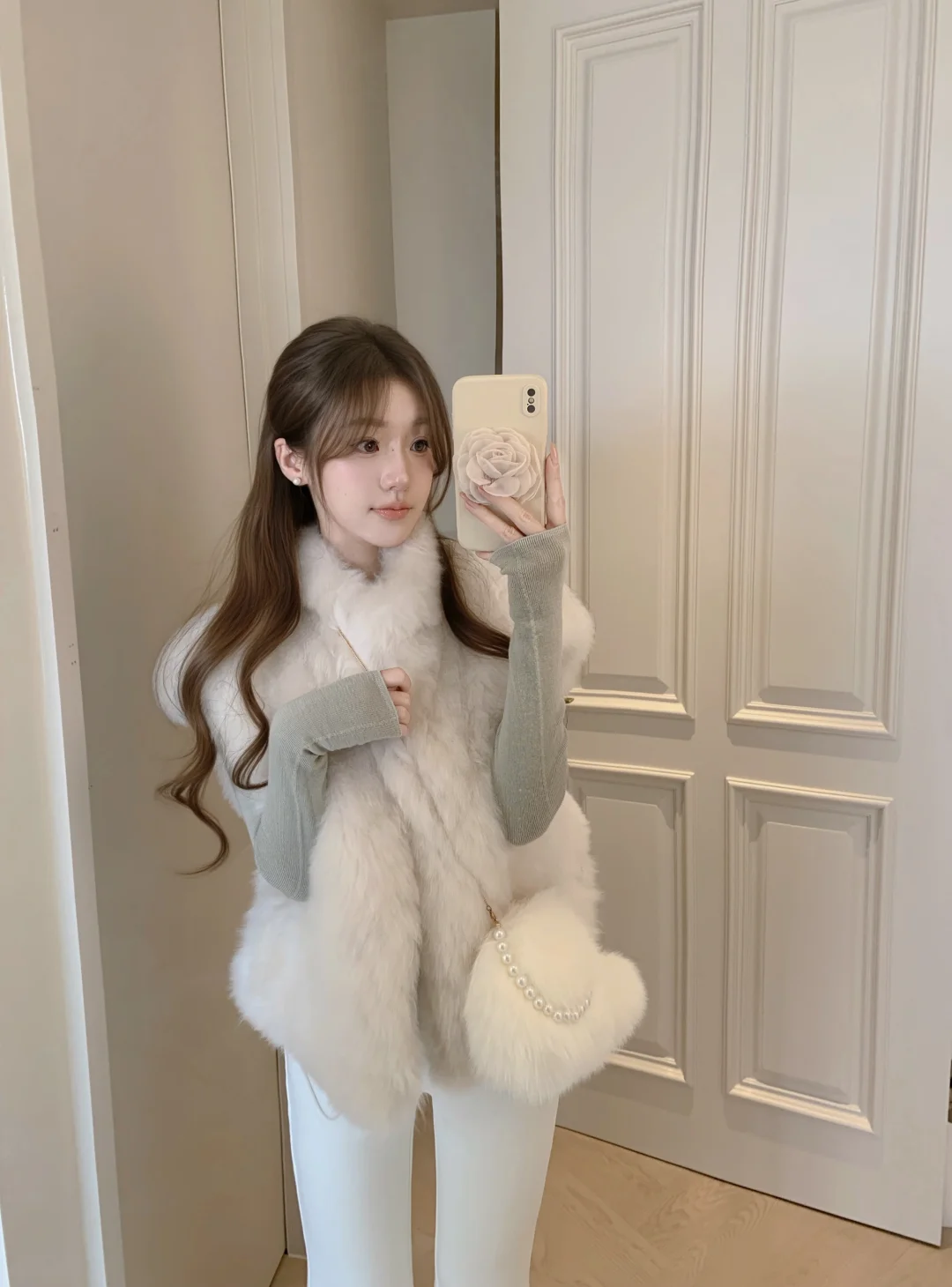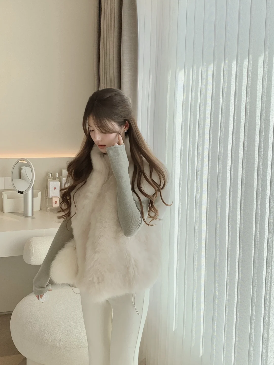 晒晒你的日常穿搭 韩系欧尼 约会穿搭 温柔穿搭 大姐姐穿搭 皮草马甲 小个子穿搭 阿拉善皮草 山羊绒马甲
