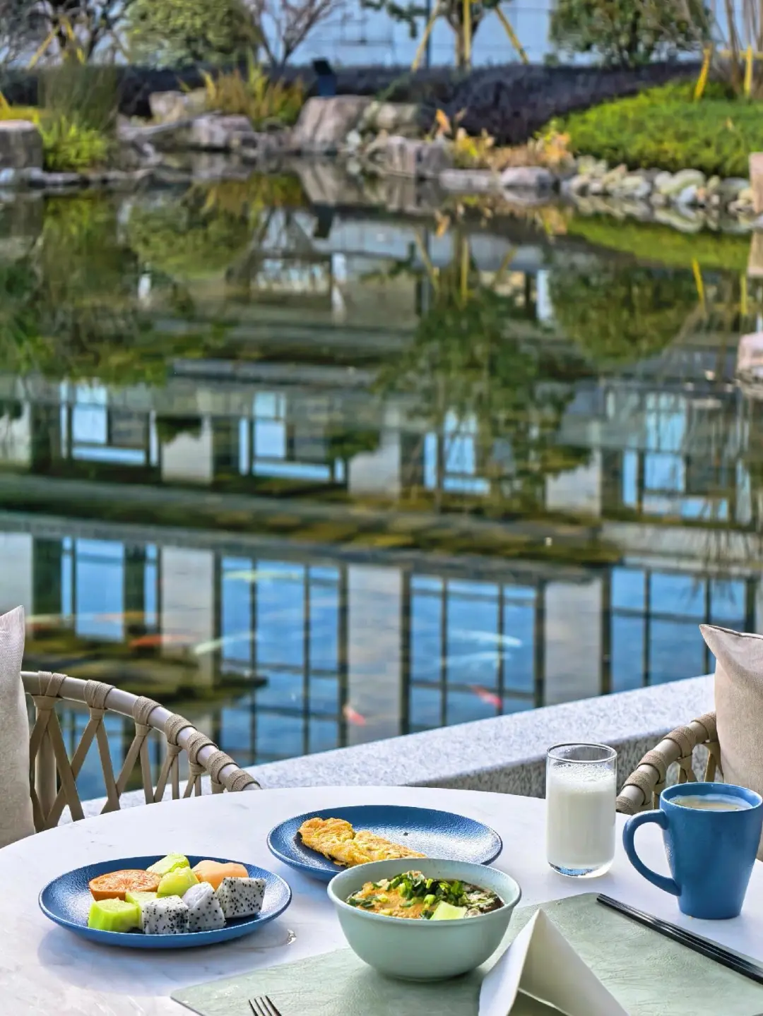 特别要说的是这家的早餐,我近半年吃过最满意的酒店早餐了,非常用心❗️除了中西式自助提供冰淇淋🍨,另外台州特色小吃档口在地特色做的非常好,强推台州糯米饭太好吃了!另外还有台州米面、海苔饼和超正宗的三种油条。另外水果还提供了现切的香蕉草莓酸奶。包子也是很好吃的手工大包。