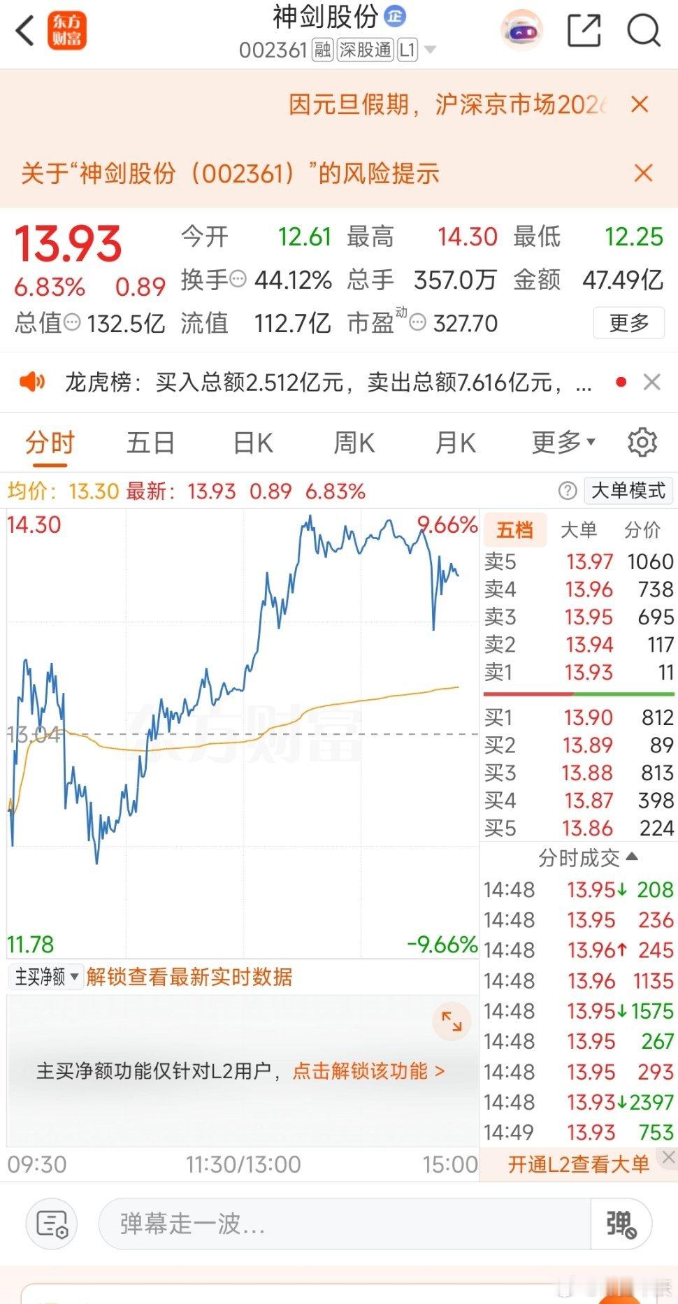 昨天的神剑股份虽然昨天跌停,但今天反包成功