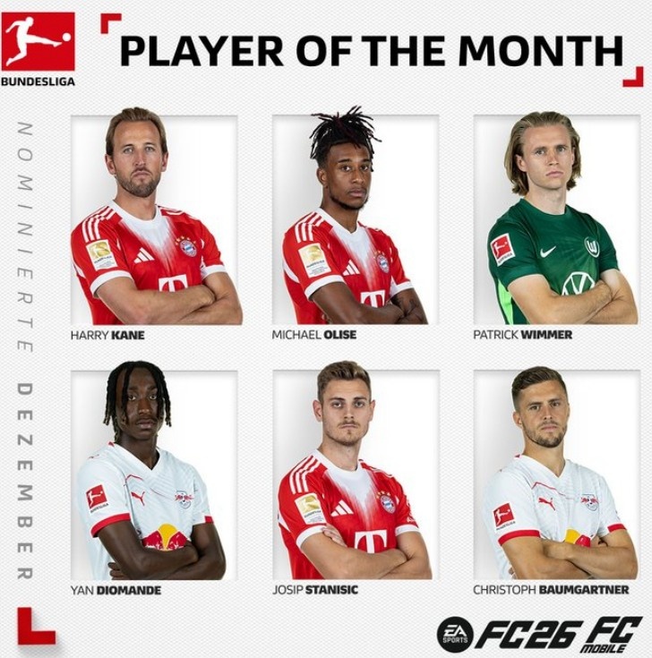 直播吧12月31日讯德甲官方评选出12月最佳球员候选名单,其中凯恩、奥利塞、斯坦尼西奇等三位拜仁球员在列,具体如下:
