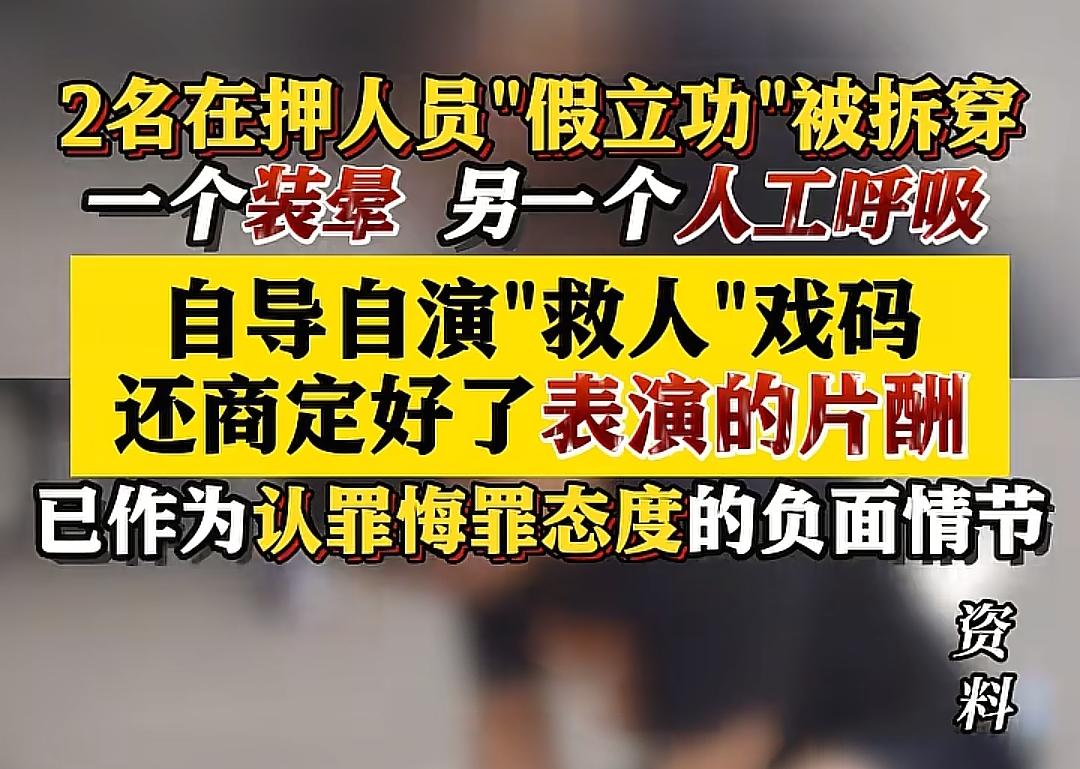 不是说没有好的舞台吗?现在生活之中随时可以搭舞台自导自演?人生如戏?在押人员“假立功”片场终穿帮! “人生如戏”从不是违法乱纪的借口,两名在押人员自导自演的“立功大戏”,终究逃不过法律的火眼金睛。 湖南桂阳县看守所内,罗某为求立功减刑,以金钱为饵利诱同监室余某配合,提前串通“晕倒”“抢救”细节,上演了一场人工呼吸、心肺复苏的虚假救援戏码。 本想靠演戏换轻罚,却不知司法机关早已布下监督天网。检察官调阅监控、核查体检记录,发现余某无病史、身体无恙,而罗某口中的“专业急救”更是漏洞百出,连基础操作规范都讲不明白。 随着余某全盘招供,这出闹剧彻底穿帮,不仅立功申请被驳回,还因弄虚作假被认定为认罪悔罪态度恶劣的负面情节。 虚假立功绝非个别现象,有人串通司法人员伪造举报线索,有人编造救人事实,本质都是对司法公正的亵渎。法律给悔改者机会,但绝不容许被算计。你认为该如何从源头遏制“假立功”乱象?服刑立功 上班式演戏 有期表演