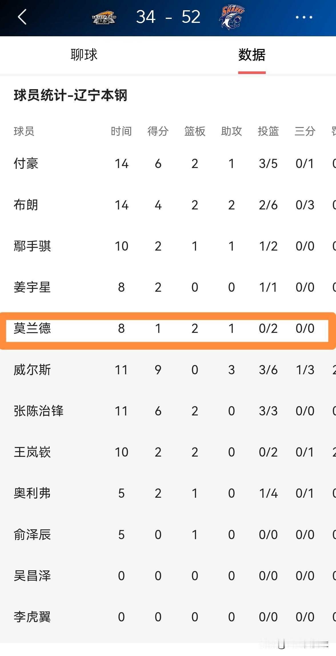 辽宁本钢外援莫兰德究竟是干什么吃的?在今天辽宁本钢主场迎战上海久事的比赛中,目前双方半场战罢,辽宁本钢以34:52落后于对手。让人感到非常失望的是,在前两节比赛中,莫兰德在场上显得无欲无求,他在首发出战的8分钟里,投篮2中0,其中罚球2中1仅仅得到可怜的1分,他的场上正负值为-18。 我真搞不懂辽宁本钢的管理层是怎么想的,他们留着莫兰德是让他养老吗?