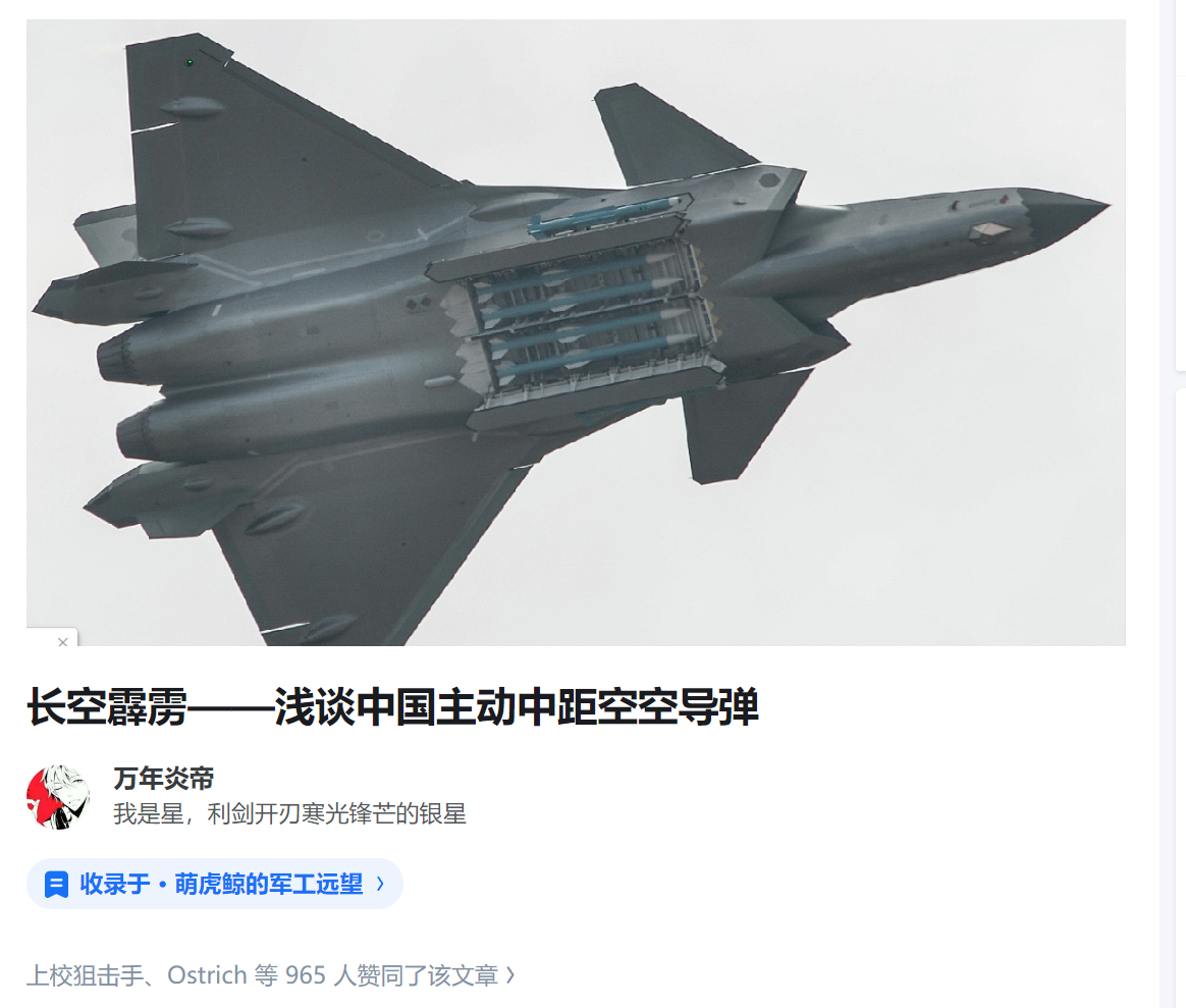 微博十大热门兵器海选 🔻霹雳震长空,猛龙破阵风。🔻要说2025年热门兵器,怎么能少的了霹雳15?这款空空导弹我在2021年的文章中就对其进行过分析和高度评价,并且给出了高空射程预测,结果五七空战击杀阵风距离还真是180多公里,接近200公里的水平,这还是外贸版本的PL15E。🔻时间过得很快,霹雳15也早已不是我军最先进的中体型空空导弹了,而美军的AIM260空空导弹,目前还在进行定型测试,没有正式进入服役进行量产。🔻我军的空空导弹特别是中距弹的生产,已经实现了全自动化流水生产线模式,产能和质量把控,价格成本都是表现很不错滴,在空空导弹这一块,我们可以骄傲的说,我们就是世界第一。