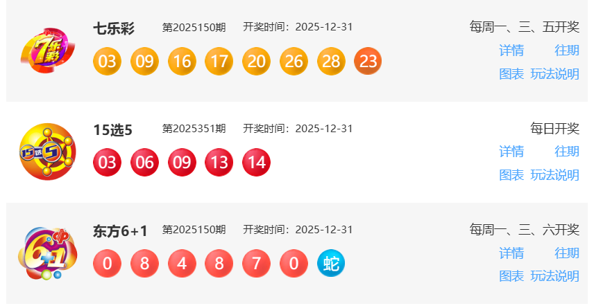 12月31日福彩中奖号码