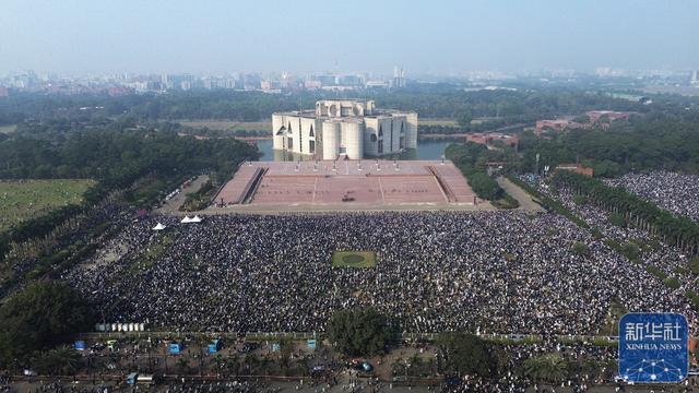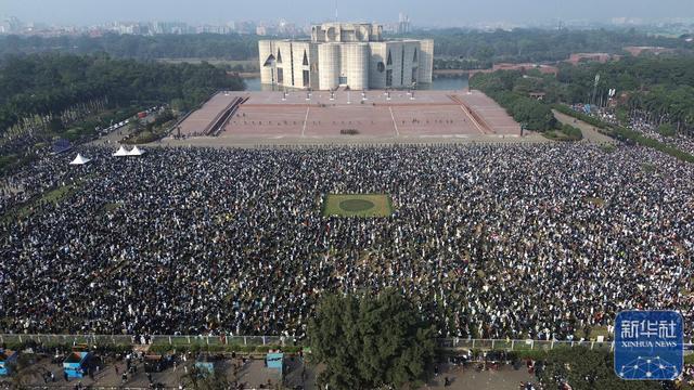 ↑12月31日,人们在孟加拉国首都达卡的国会大厦附近参加卡莉达·齐亚的葬礼(无人机照片)。