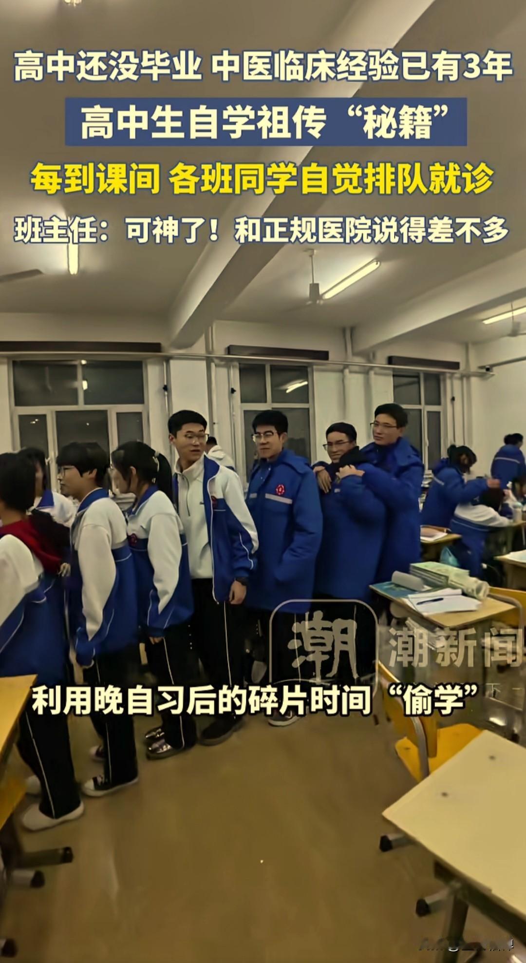 内蒙古高中一男生,小小年纪中医临床经验经验已有三年,在课间时间,教室为同学们提供