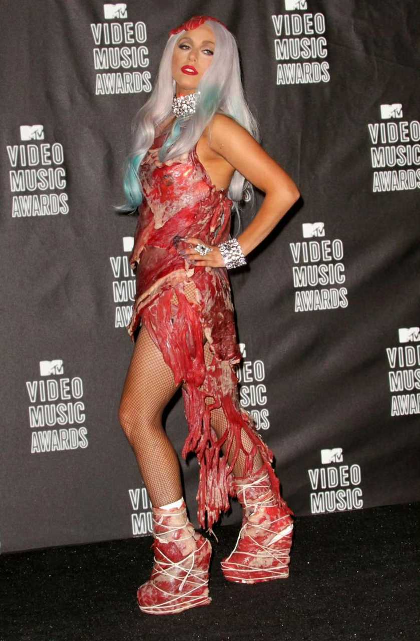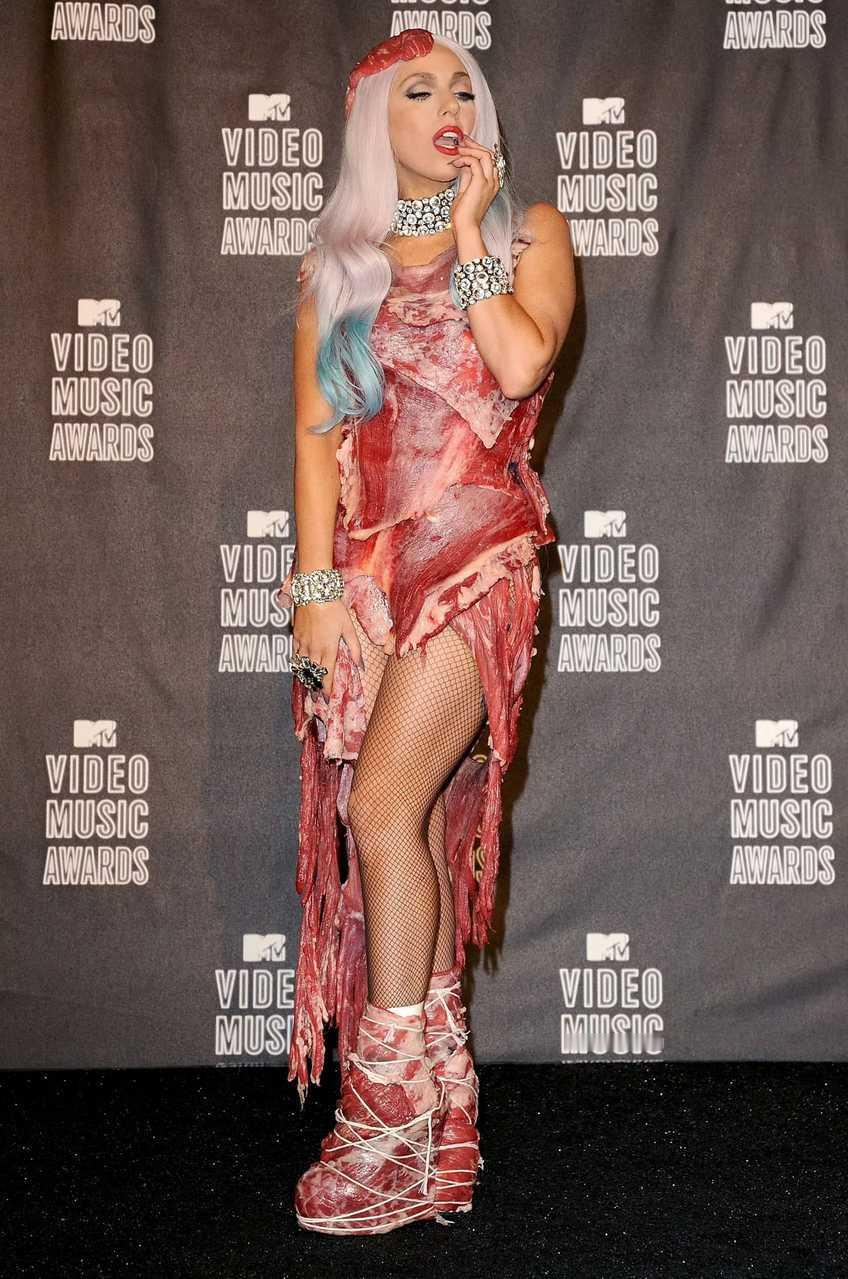 【来自投稿】2010年9月,MTV音乐录影带大奖(VMA)颁奖典礼上,lady gaga惊世骇俗的鲜肉装造型