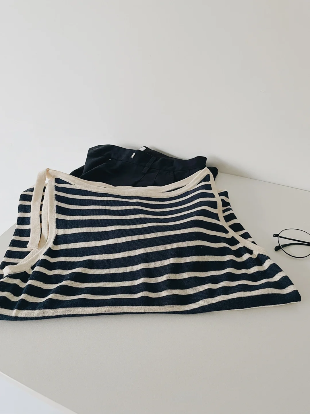 回到今天的穿搭,条纹背心配西裤,还是很喜欢这一套,适合现在这个季节,小背心配一件薄开衫,春天舒服的感觉来了!