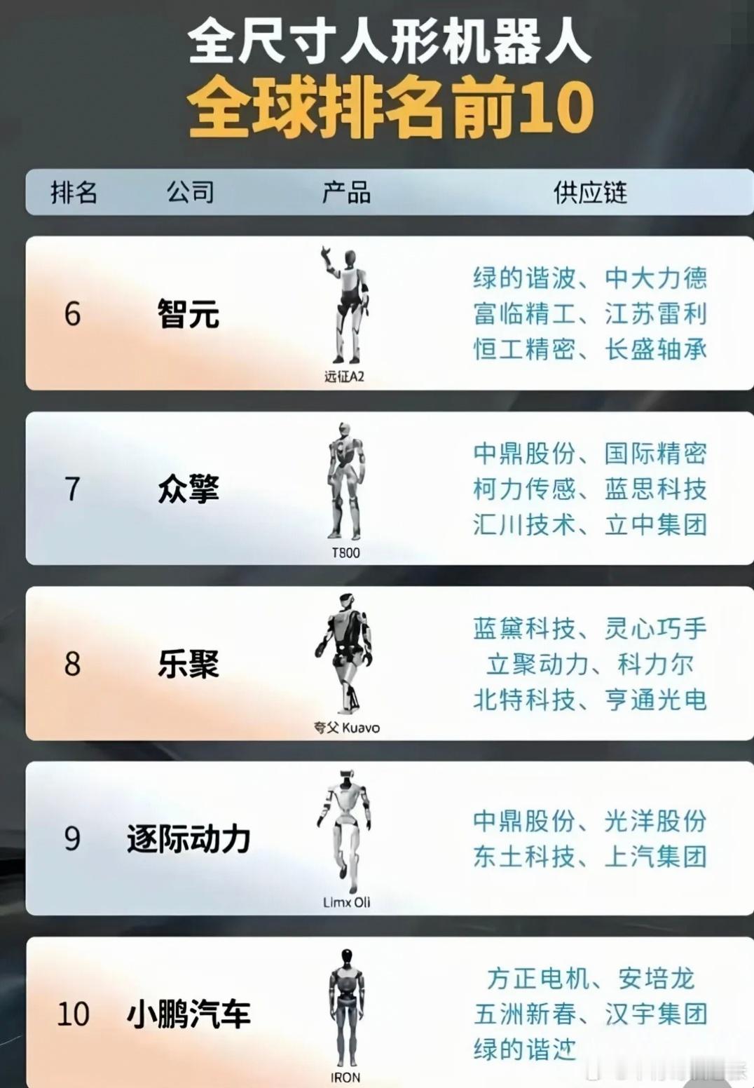 人形机器人前10公司供应链。虽然我不看好人形机器人但是,也会强迫自己关注相关的公