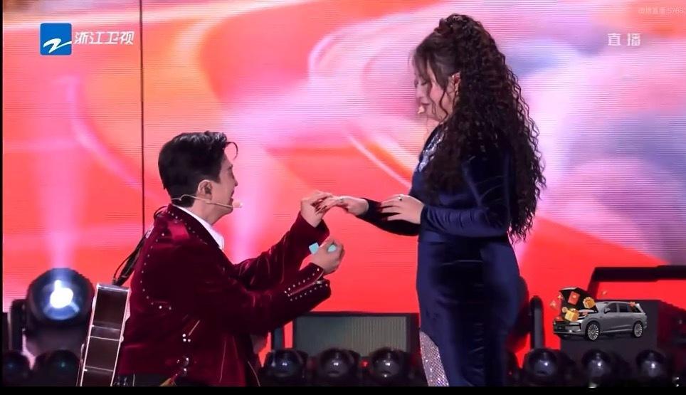 李川求婚锤娜丽莎表演结束后,李川在台上向锤娜丽莎求婚,她怎么也没想到会在这个时间