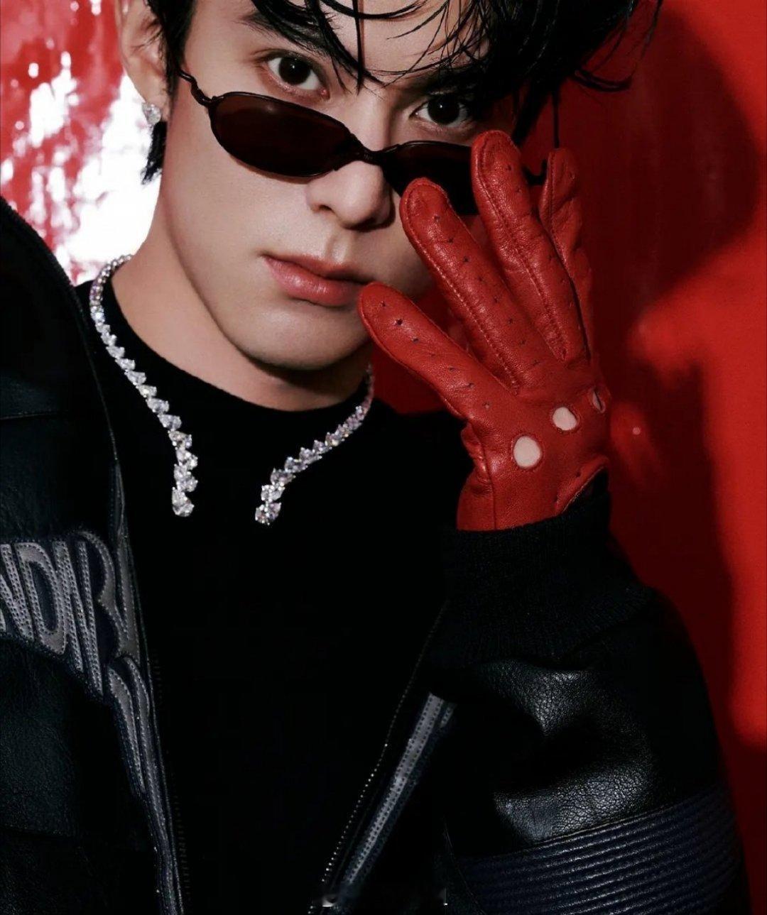 哇哦,王鹤棣的跨年第二套妆造图来了,墨镜、皮衣、皮手套都给自己整上了,一整个就是