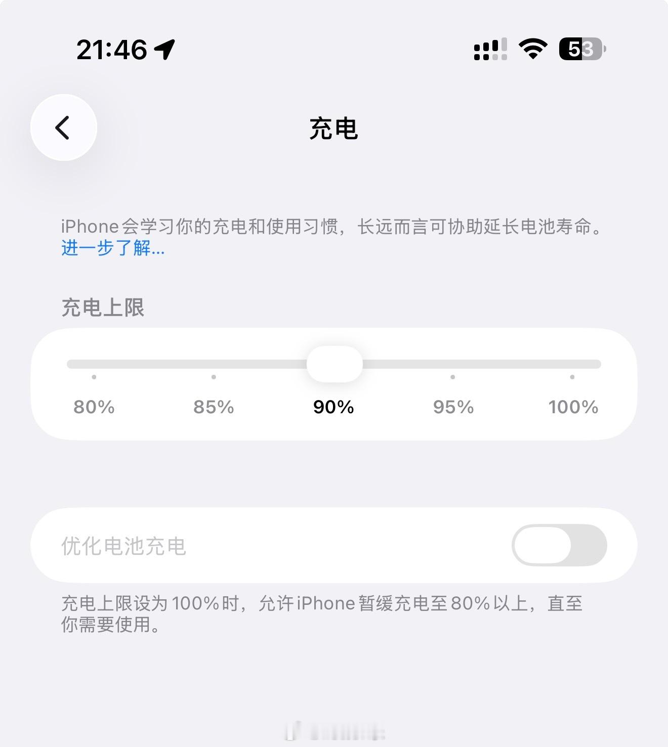 长期手机充电至100%会损伤电池一般手机电池🔋有一个循环计数,也就是寿命,每次充满100%电就等于增加循环计数的概率,建议大家对新手机电池设置到90%自动停止充电,这样可以最大限度保持电池活性,延长寿命。