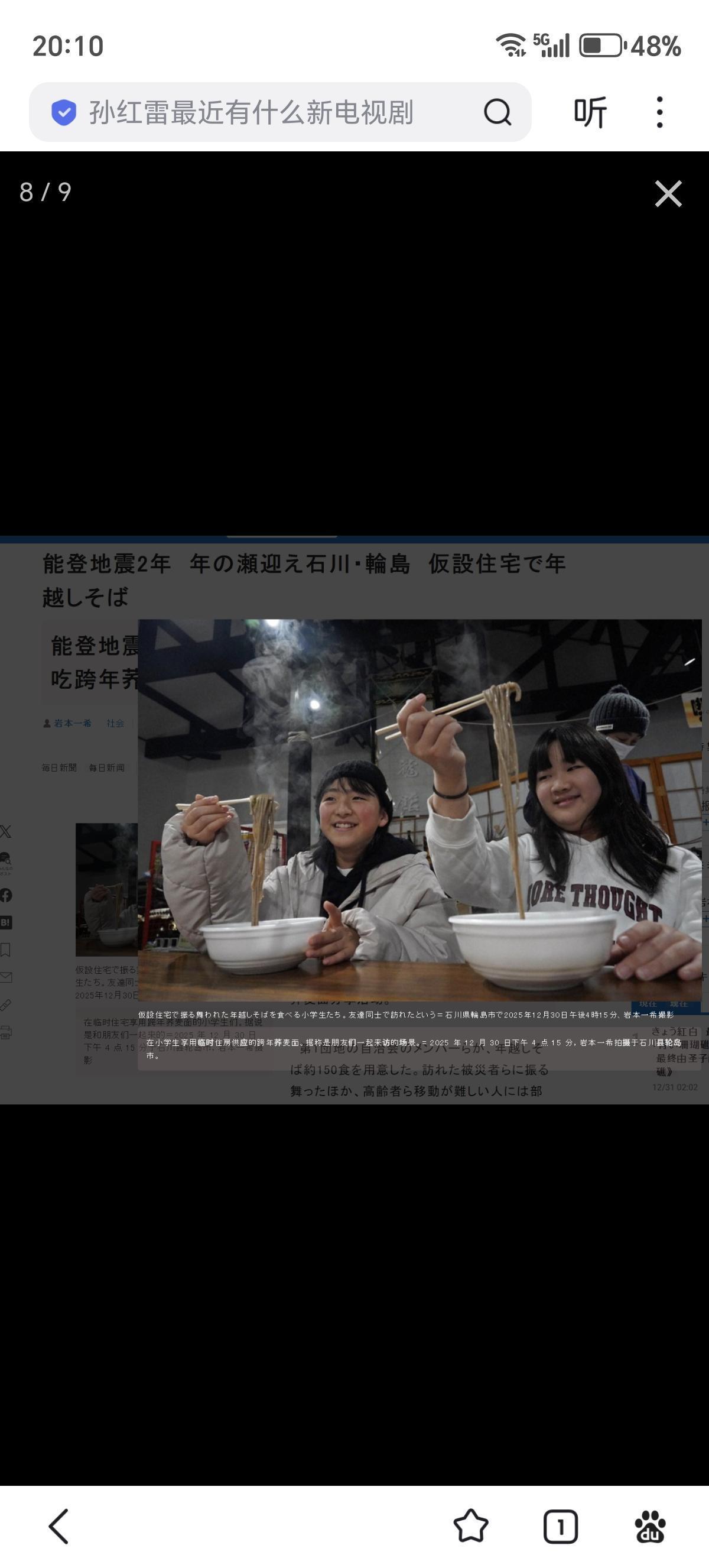 日本能登半岛灾区即将迎来震后两周年。 咱就不提重建了,石川县轮岛市朝市通周边的废墟现在还是拆完的平地。 日本每日新闻报道。 图5-7是仍无法恢复正常生活的加贺屋。图9是在石川县轮岛市临时安置房内用荞麦面迎来跨年的日本小学生。 自治会长桥爪和夫(68 岁)说道:“虽然明年可能还要继续住在临时安置房,但希望大家吃了这碗荞麦面,能迎来一个好年。” 图9的居民说建筑费飞涨,建不起重建房。 真能忍啊。