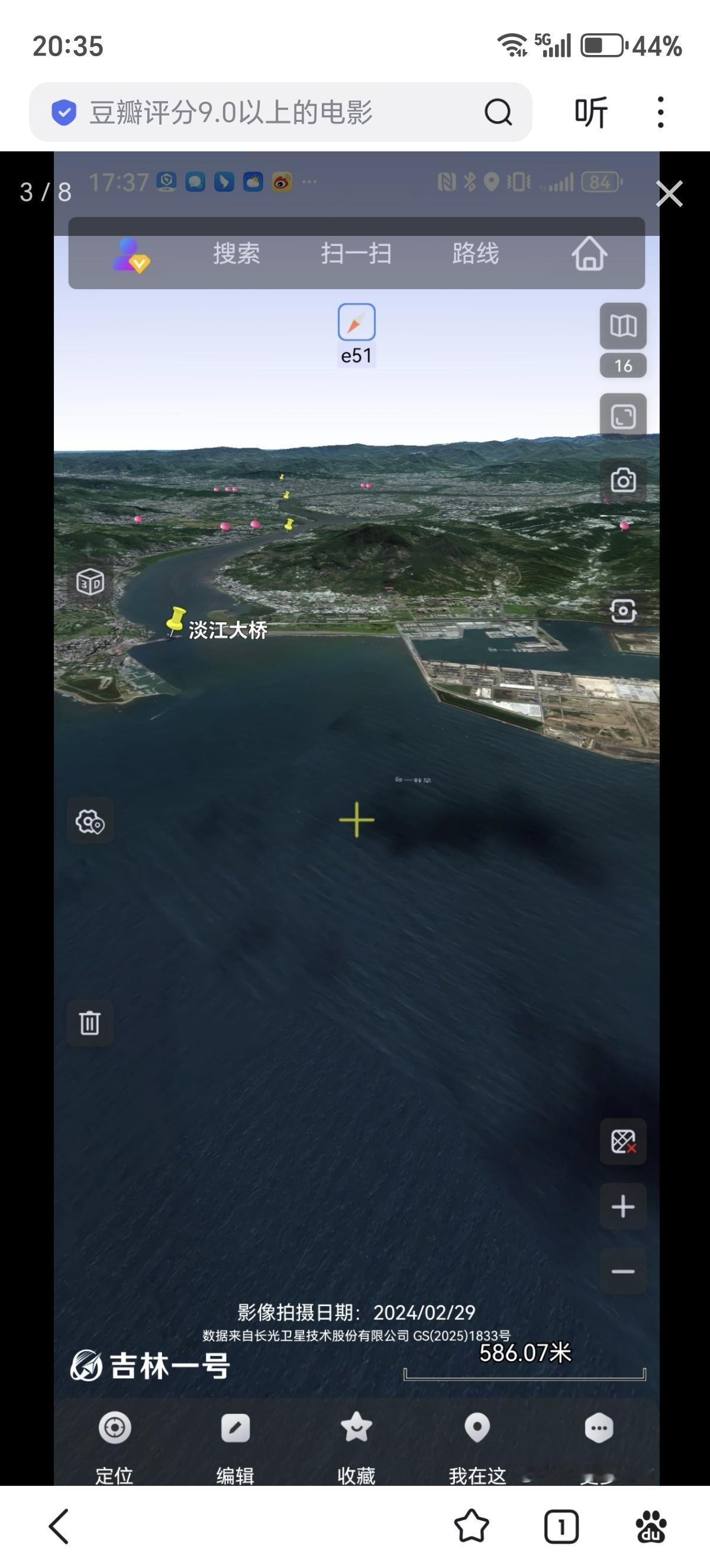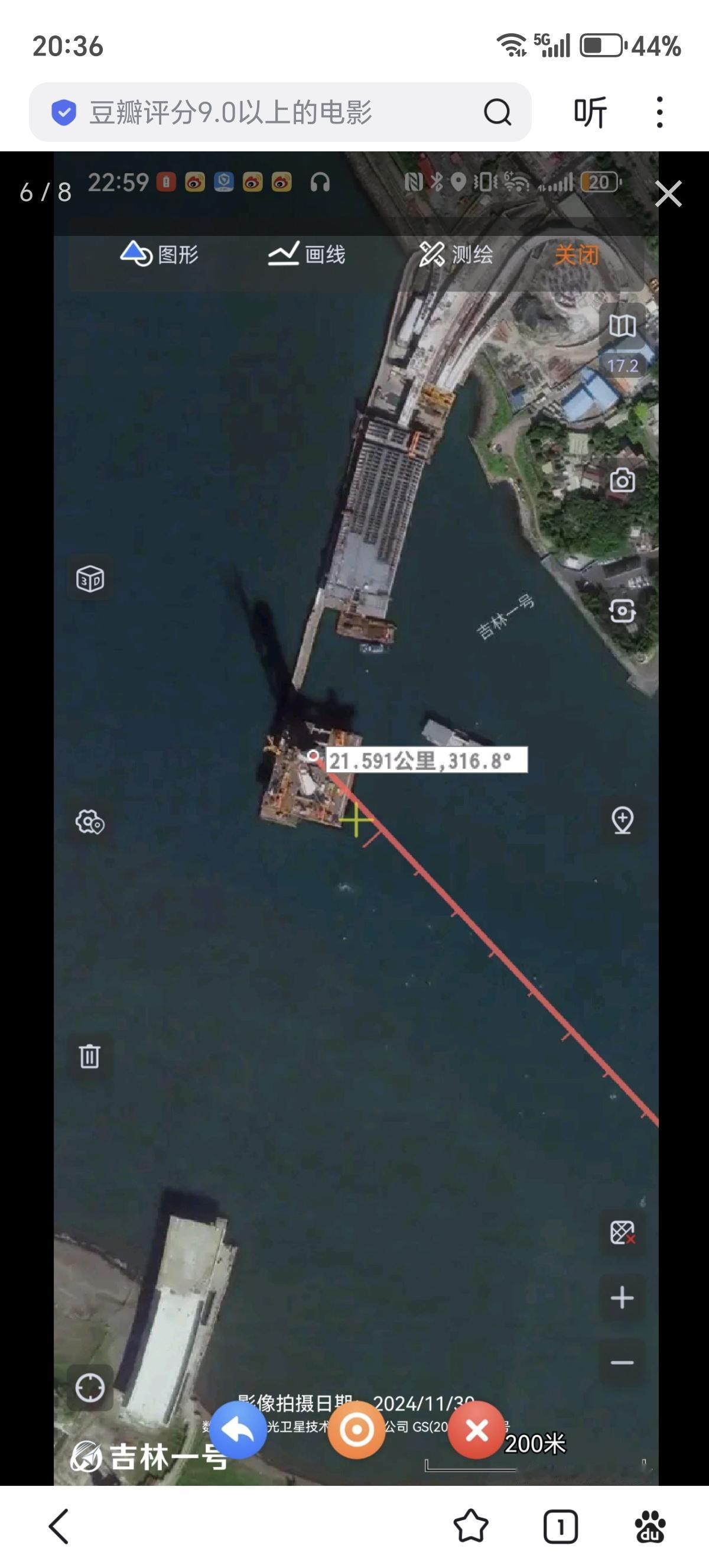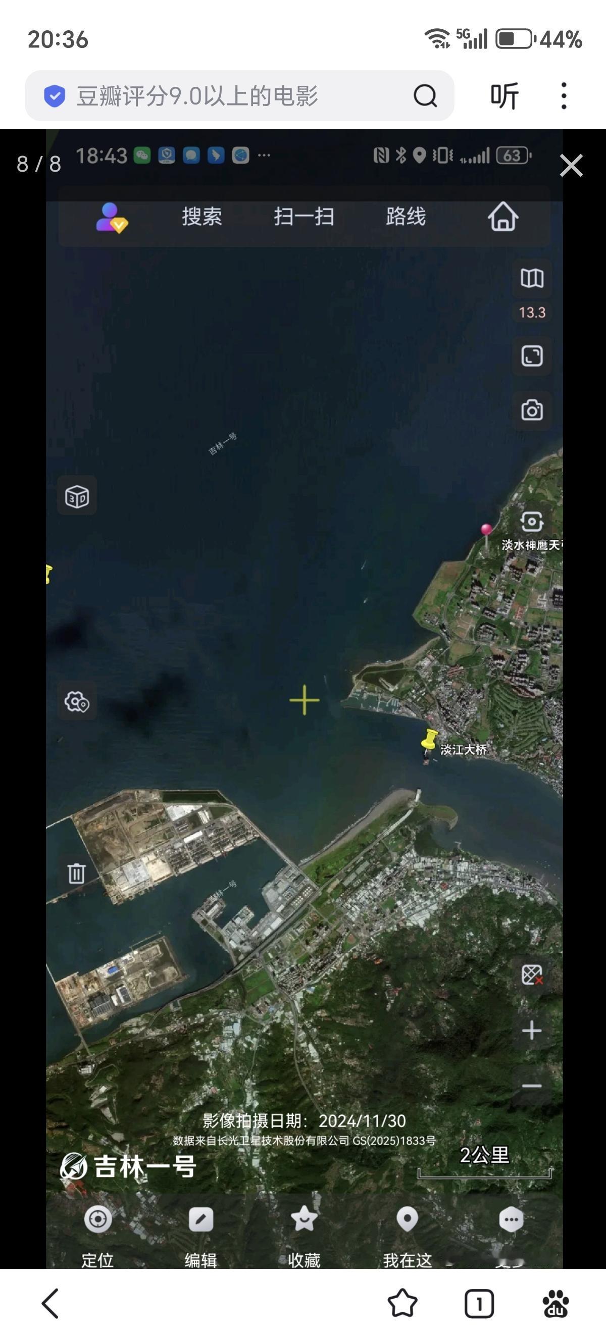 双尾蝎淡水河口这张图有个非常有意思的地方。 对比图一、图二和图三,图三由近及远四个图钉分别是淡江大桥、关渡大桥、重阳大桥和101大厦,图一、二中淡江大桥、重阳大桥和101非常清晰能识别出来。 问题是看不到关渡大桥,应该是被观音山挡住了。 图七的关渡大桥一直是对面淡水河口防御的核心,这里的防御部队从关渡军到关渡师,再到现在的旅级的关渡指挥部,始终围绕着关渡大桥展开,营区也一直在东岸的后山营区。关渡大桥的防御包括大家已经看到的放漂浮汽油桶,甚至对面计划紧急情况下炸毁关渡大桥以阻止我军延淡水河南下台北市中心。 这就说明:拍摄位置是在一个非常狭窄的竖向角度区域内,能看见淡江大桥,能看见重阳大桥和101,唯一看不到的就是关渡大桥,淡水河似乎也被截成两段了。这个角度区间非常小非常刁钻,或者说双尾蝎的高度非常低但是又不是掠海高度,再低就看不见距离河口淡江大桥直线13公里的重阳大桥,再高就能看见距离淡江大桥直线7公里的关渡大桥和完整的淡水河了。 还有一个被很多人忽视的细节:图二右下角是台北港,它的东侧围堰护堤看起来只有短短一段,但事实上它的长度达到1600米,远比淡江大桥1170米的跨度更长(图八)。唯一符合图二视图的解释就是双尾蝎几乎就在堤坝的延长线方向上,略微偏东。再结合昨天已经推算过的,双尾蝎应该在101-重阳大桥东桥柱312.8方位(以101为原点图五)和101-淡江大桥斜拉柱316.8方位(图六)形成的水平扇区区间内,再延长一下台北港东侧堤坝延长线,大致位置就出来了。 然后再结合上面推断的高度视角区间,就几乎能出推算出双尾蝎的拍摄位置和高度了。具体就不说了,只能说句双尾蝎不仅飞进了对面的“领海”,而且飞行高度出乎意料的低。