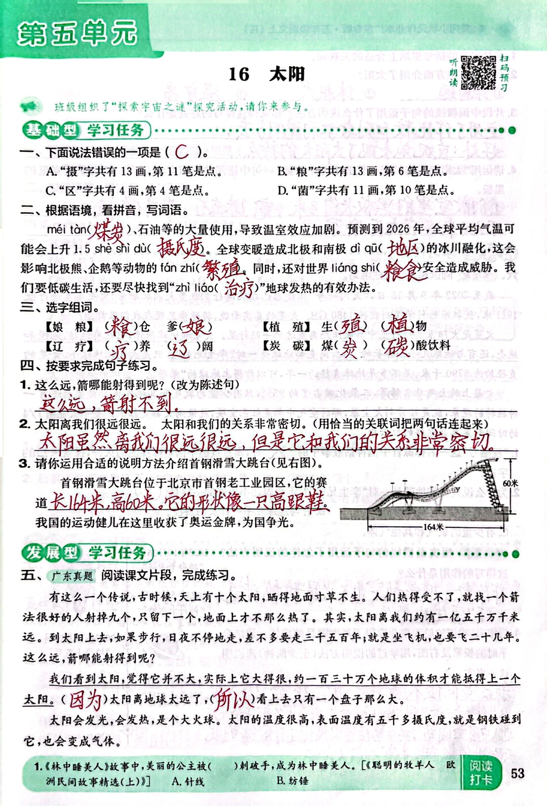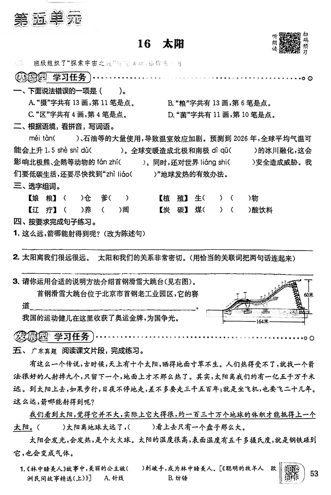 [二R]同步练习:同步课文的练习题,预习复习都可以。