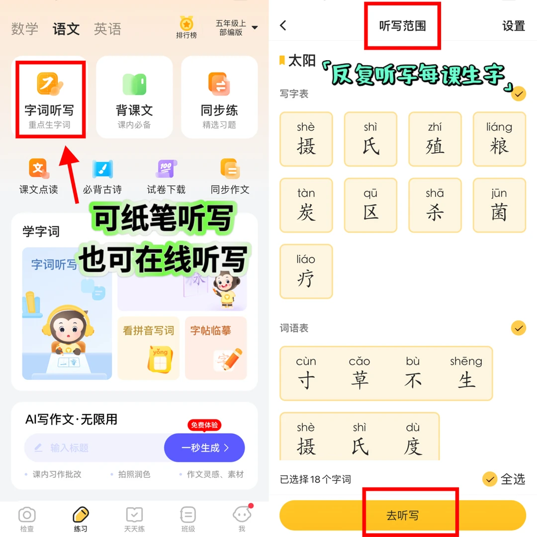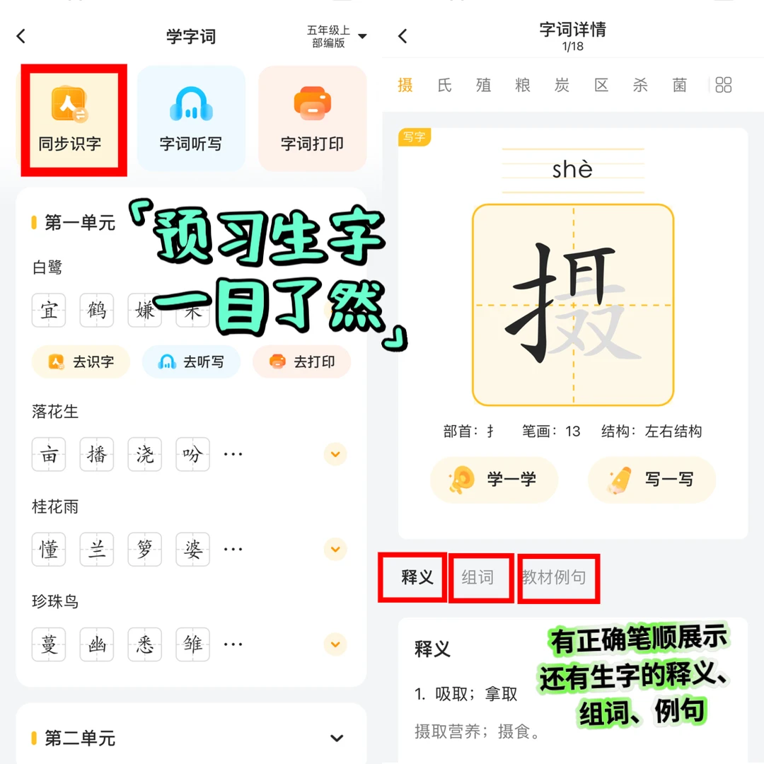 [一R]字词学习:同步字词练习,拼音、笔顺、笔画、组词、近反义词、例句等形式,字词学习更透彻,还可以自主听写。妈妈也会比较省心