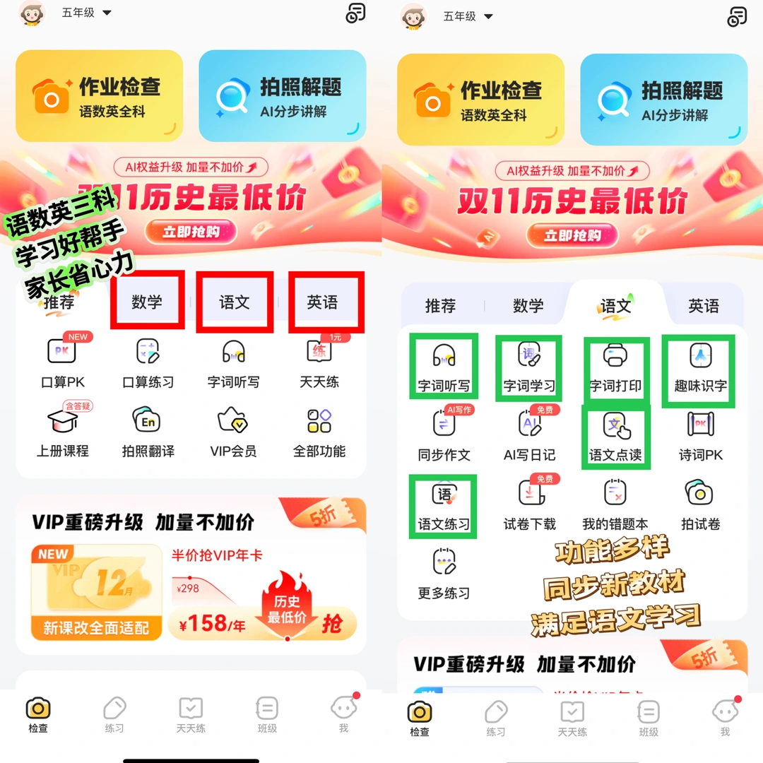 没有时间精力,可以用小猿口算app帮助孩子学习字词,很多妈妈只用来批改作业,还不知道上面很多免费实用的功能