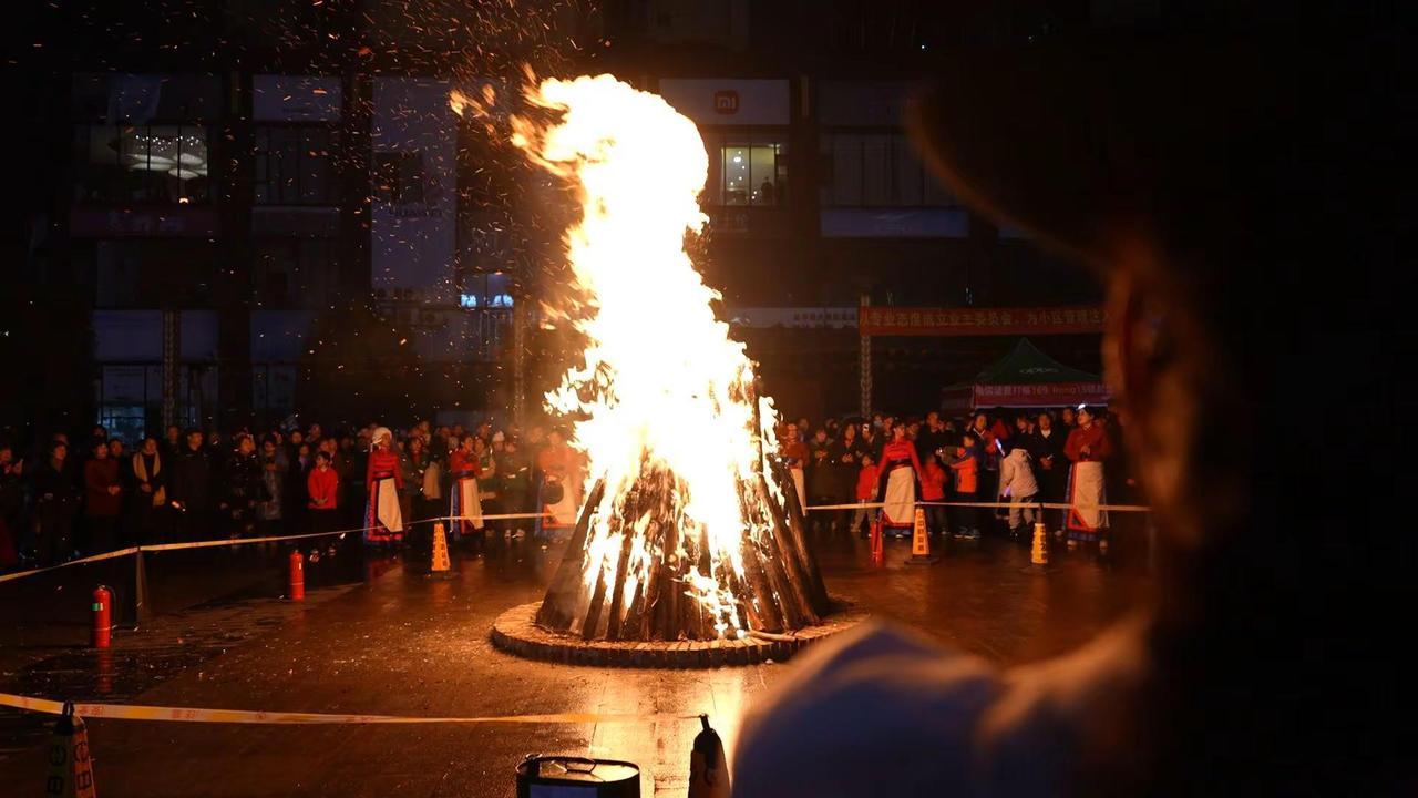 12月31日晚,水晶郦城蝴蝶广场上火光跃动、笑语飞扬,“欢聚跨年夜.情暖水晶郦城