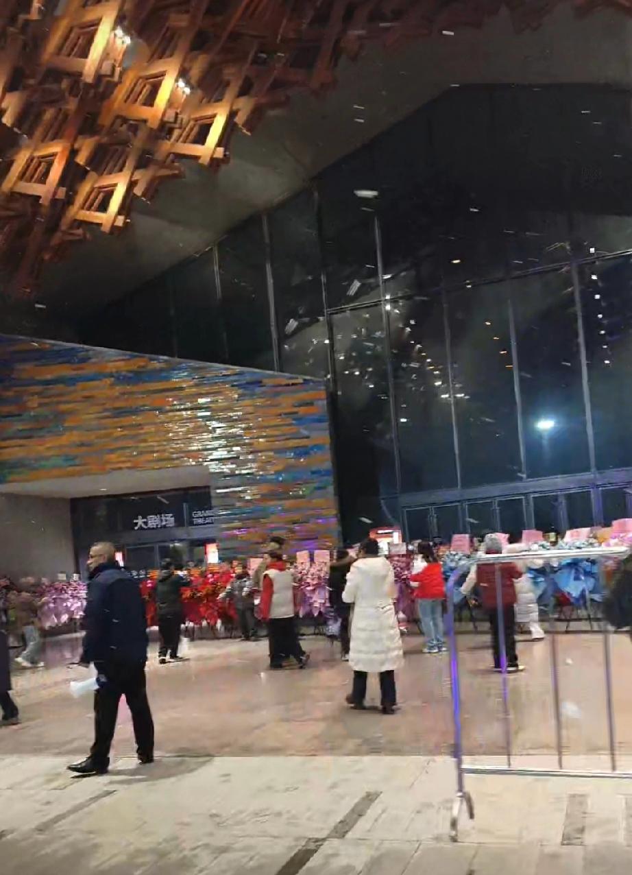 董宇辉真的是太忙了,凌晨1点半了,据说还有16家媒体等着采访。现场的粉丝朋友们还在风雪中坚守、等待,有的朋友已经等了一天了。 这里也因为没有带手套而冻得两手通红,手机都拿不住,鼻涕都冻出来的朋友;也有因为车票到点了,不得不遗憾离开的坐在出租车里痛哭流涕的朋友…… 后来在工作人员的告知下,只能带着没有见到宇辉的遗憾去拿了一些鲜花先回去了。 天气虽然寒冷,但是每一位现场的朋友们的内心却是温暖的。 他们守候的是他们心中的偶像,是他们生活中的光! 董宇辉 与辉同行