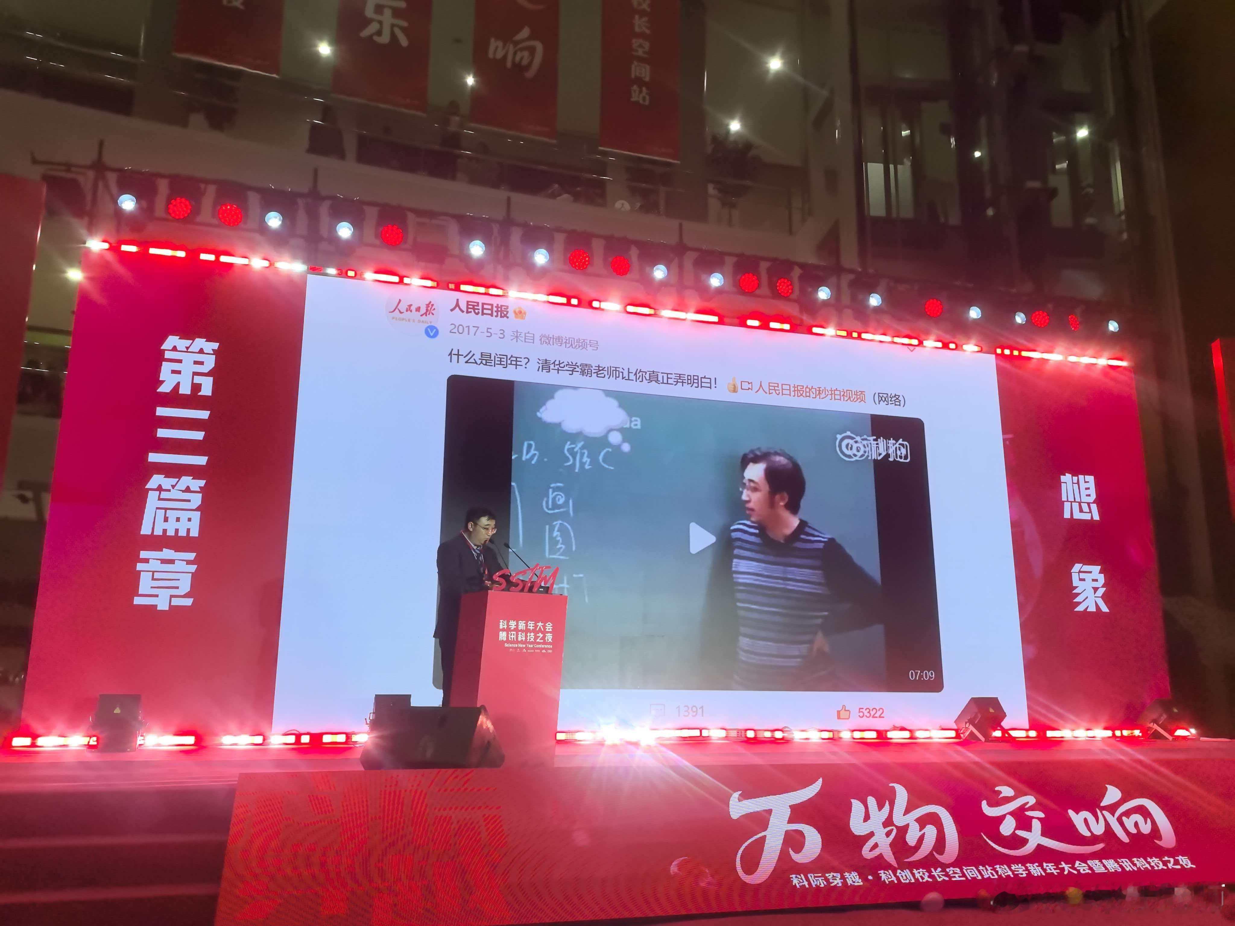 有幸受到上海科技馆倪馆长的邀请,来参加了万物交响跨年活动,真是热闹又有收获。做了实验,听了演讲,看了歌舞。这个新年过的太有意义了。话说这两天真是忙飞了,昨晚准备稿子到两点半,今早六点起来开会,开到12:00坐飞机来上海,晚上参加活动。明早三点还要起来参加另一个科技追光的活动。今晚不睡了!