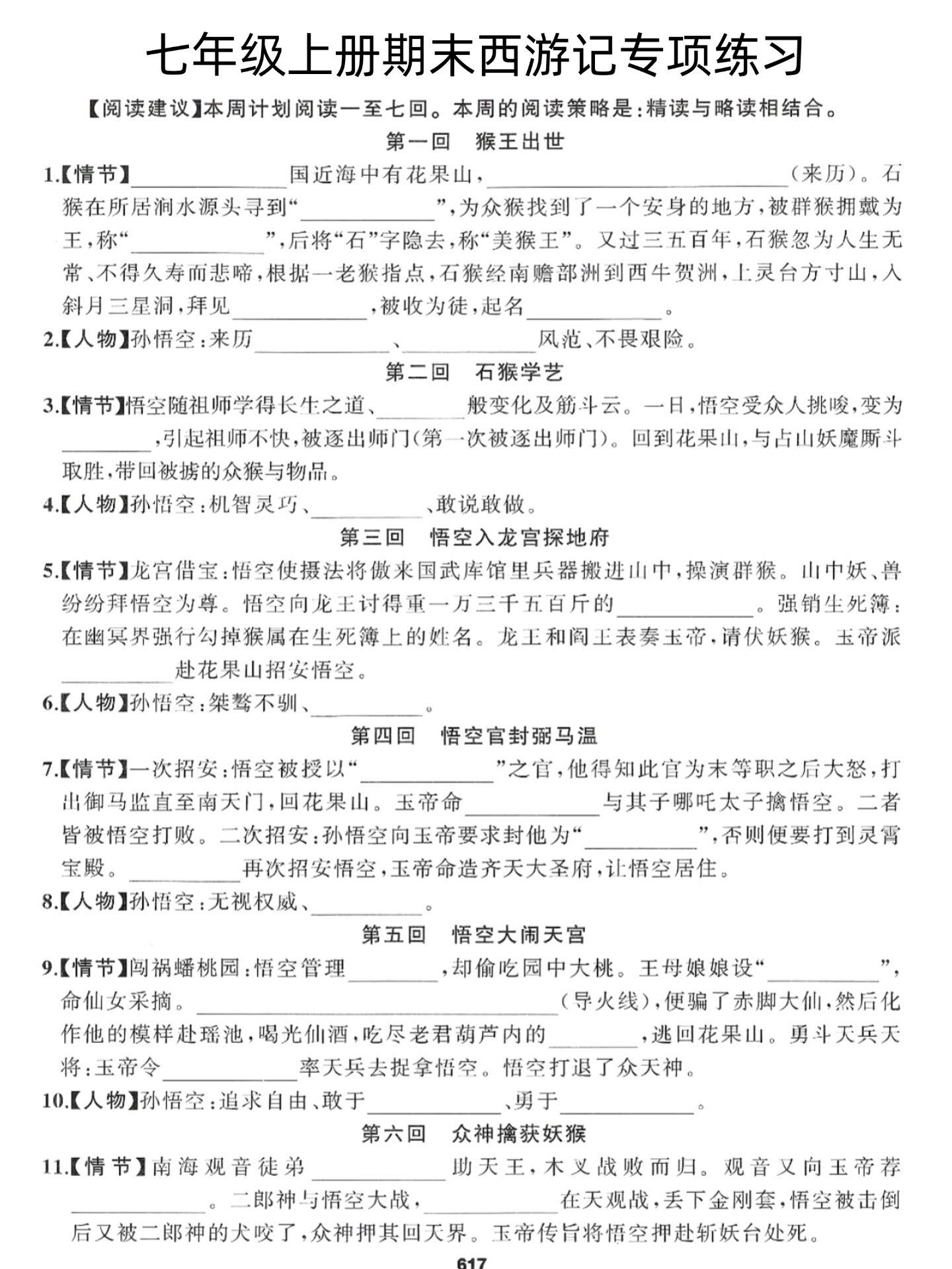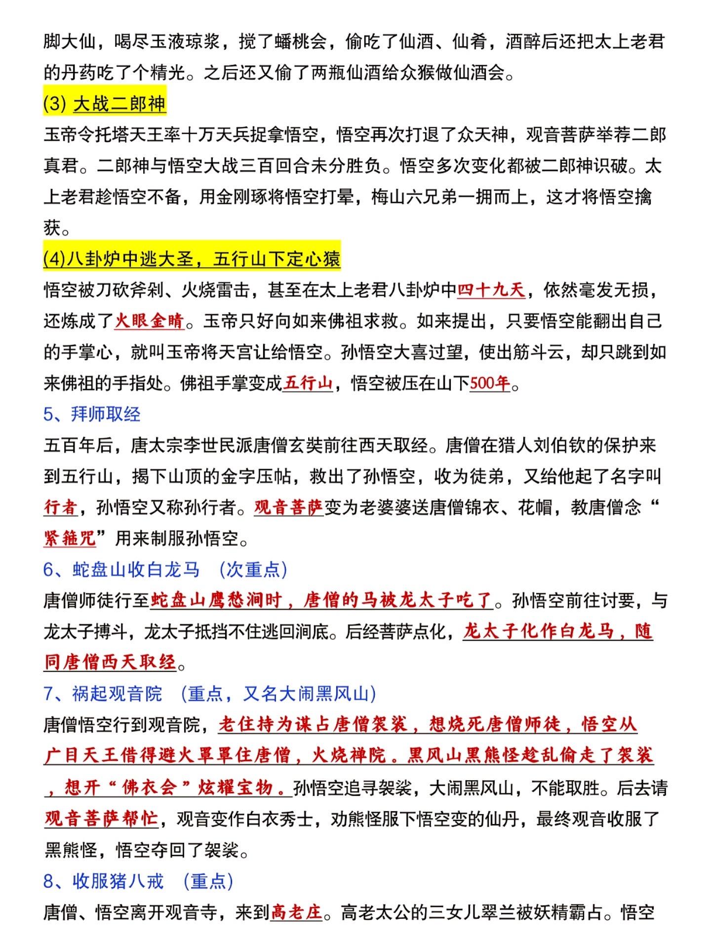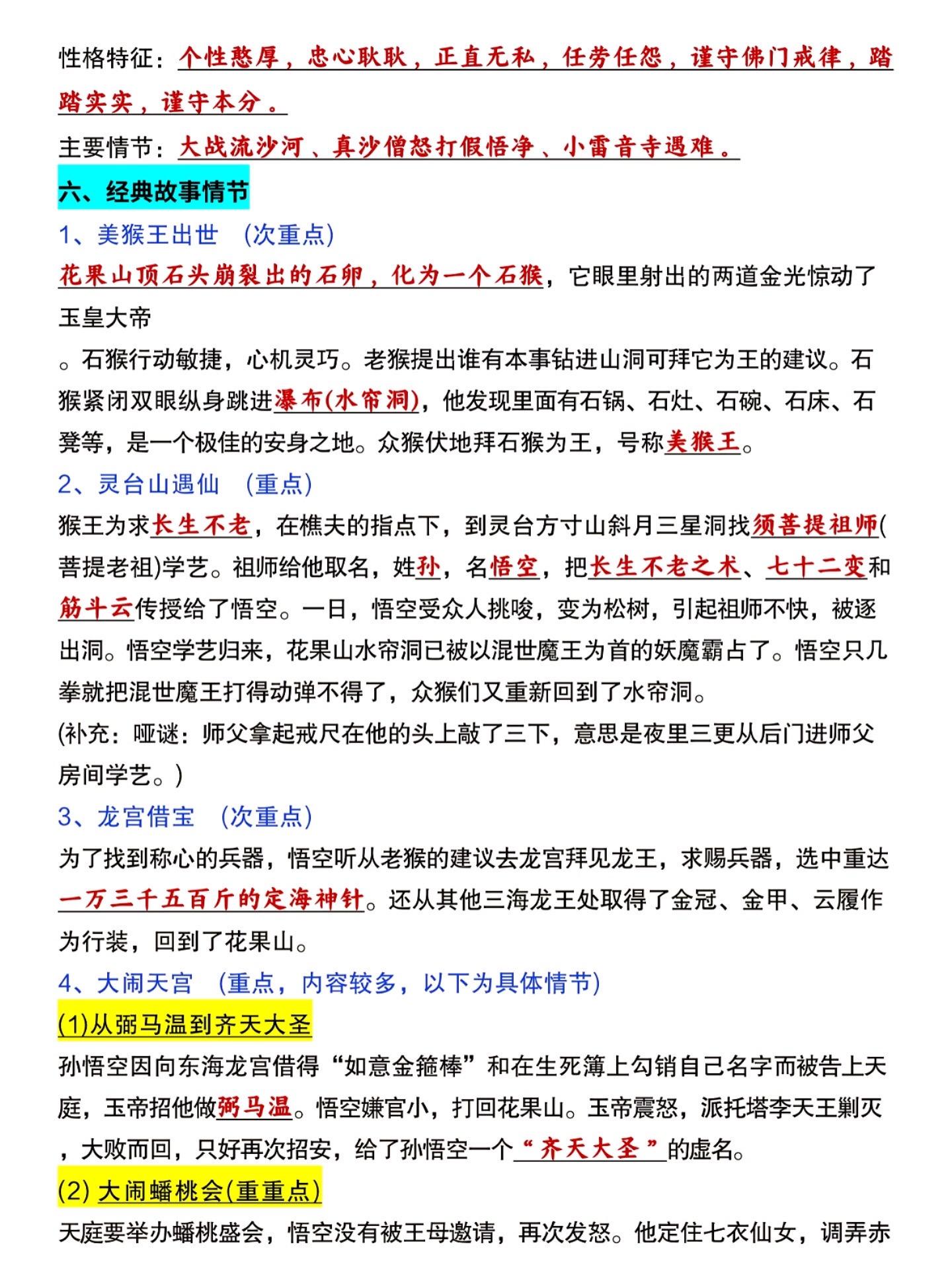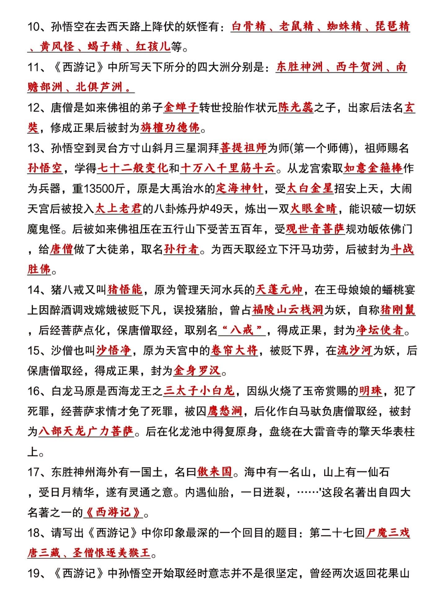 七年级上册语文西游记必背知识点汇总练习。