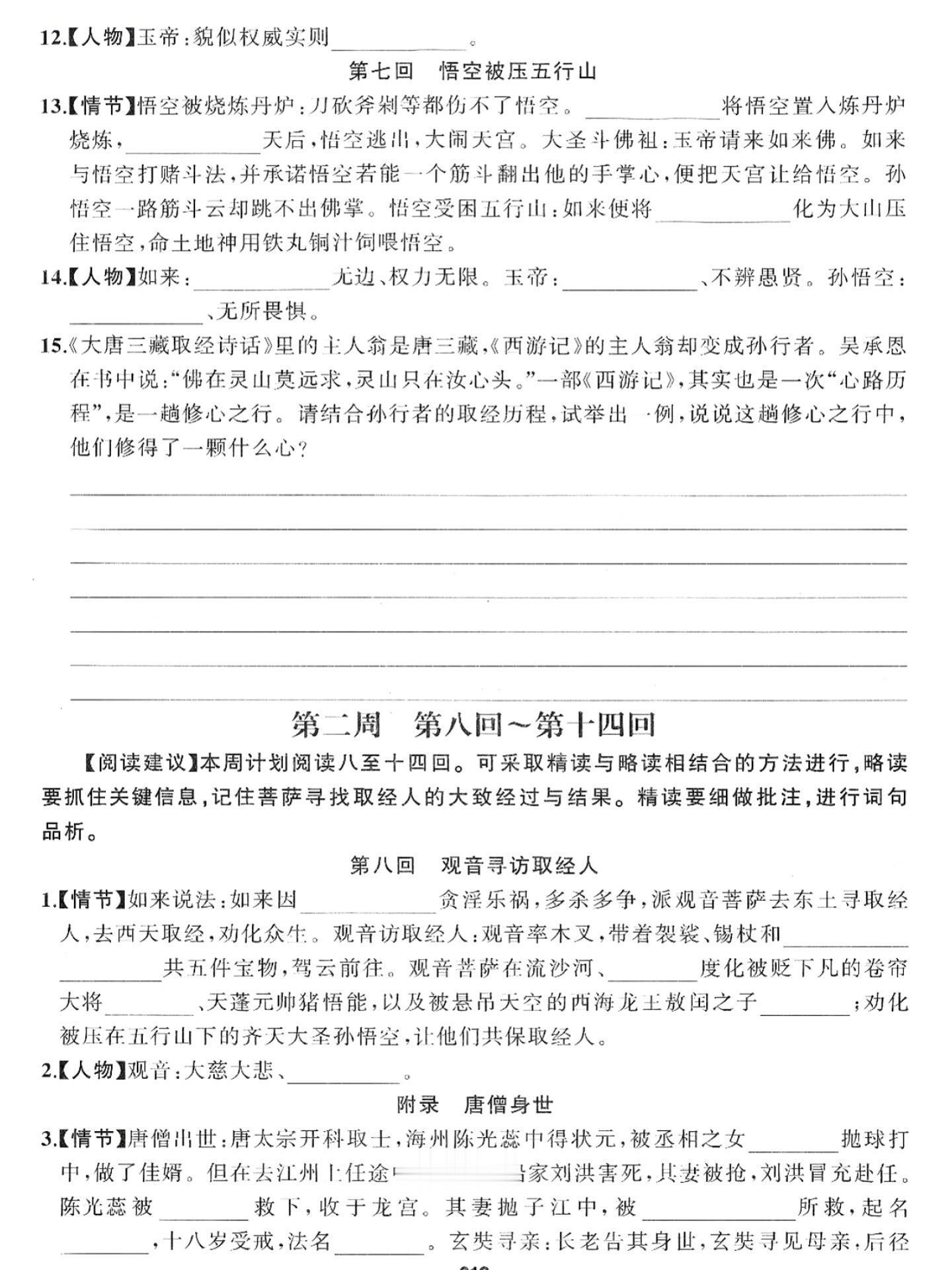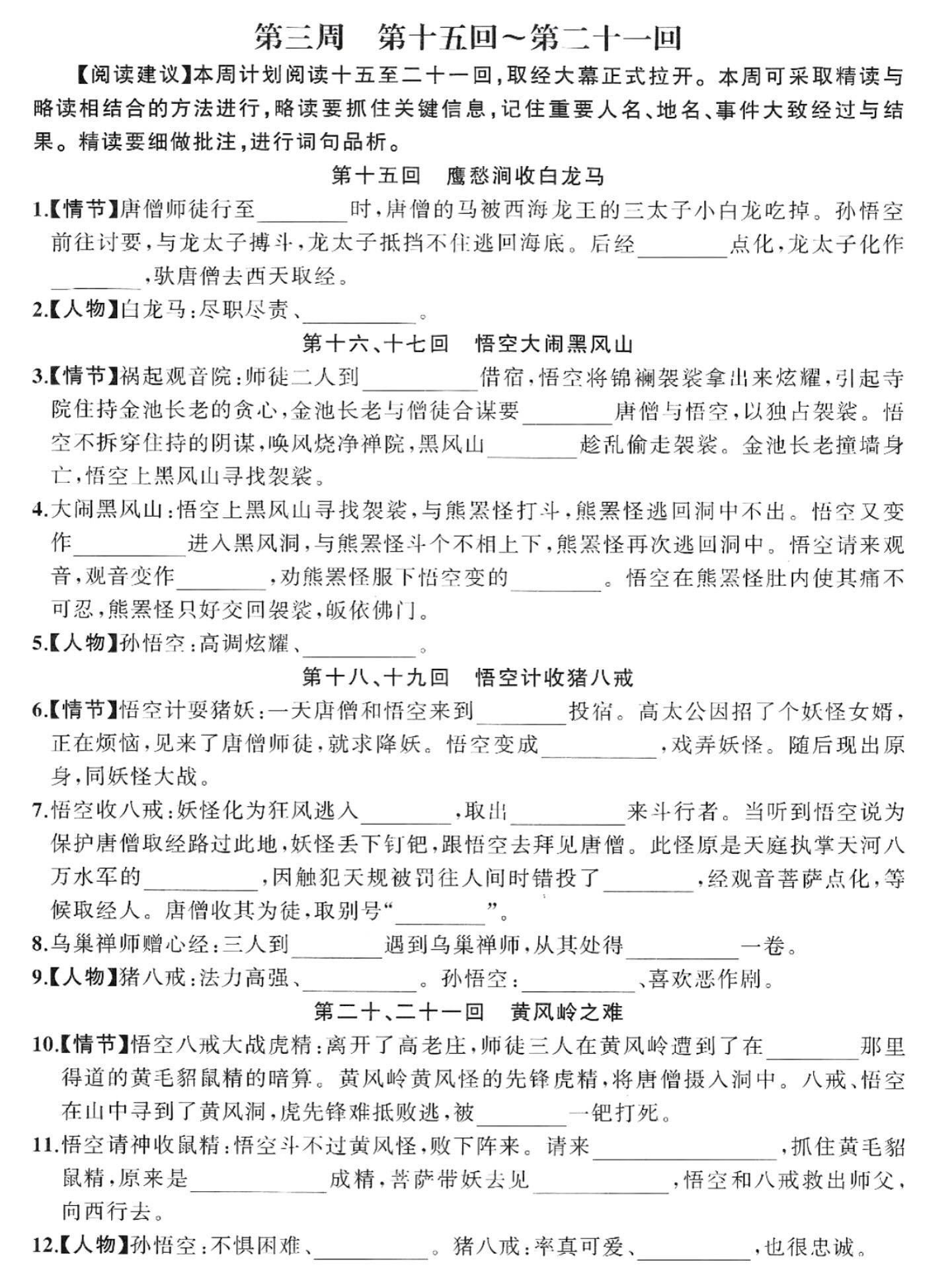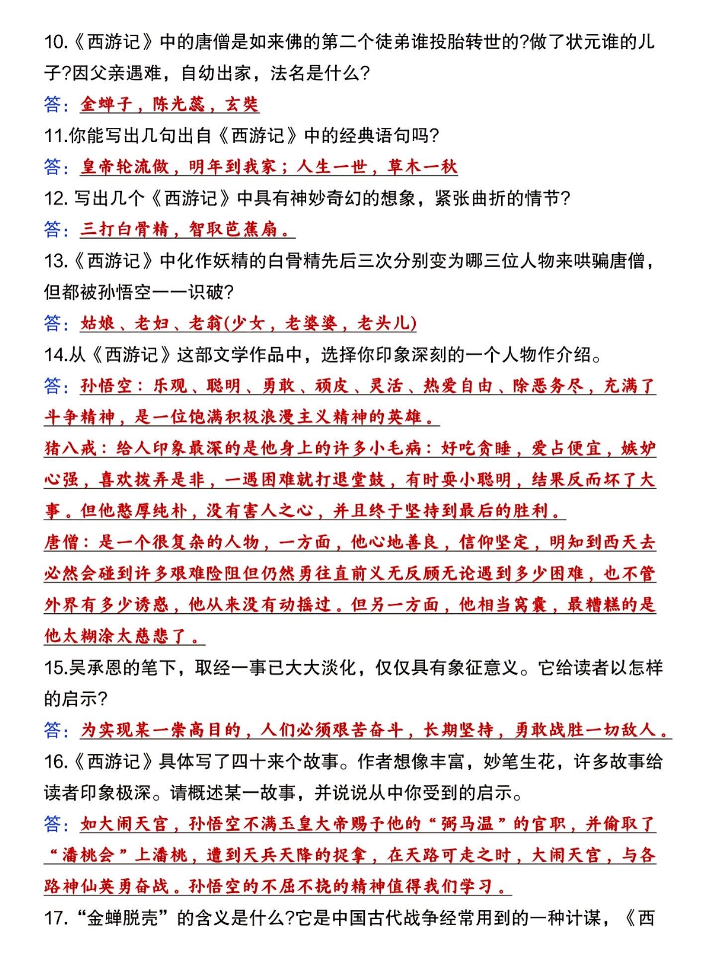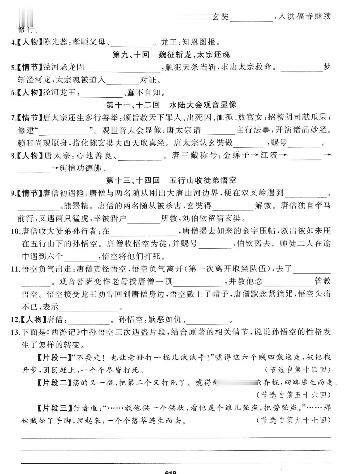 七年级上册语文西游记必背知识点汇总练习。