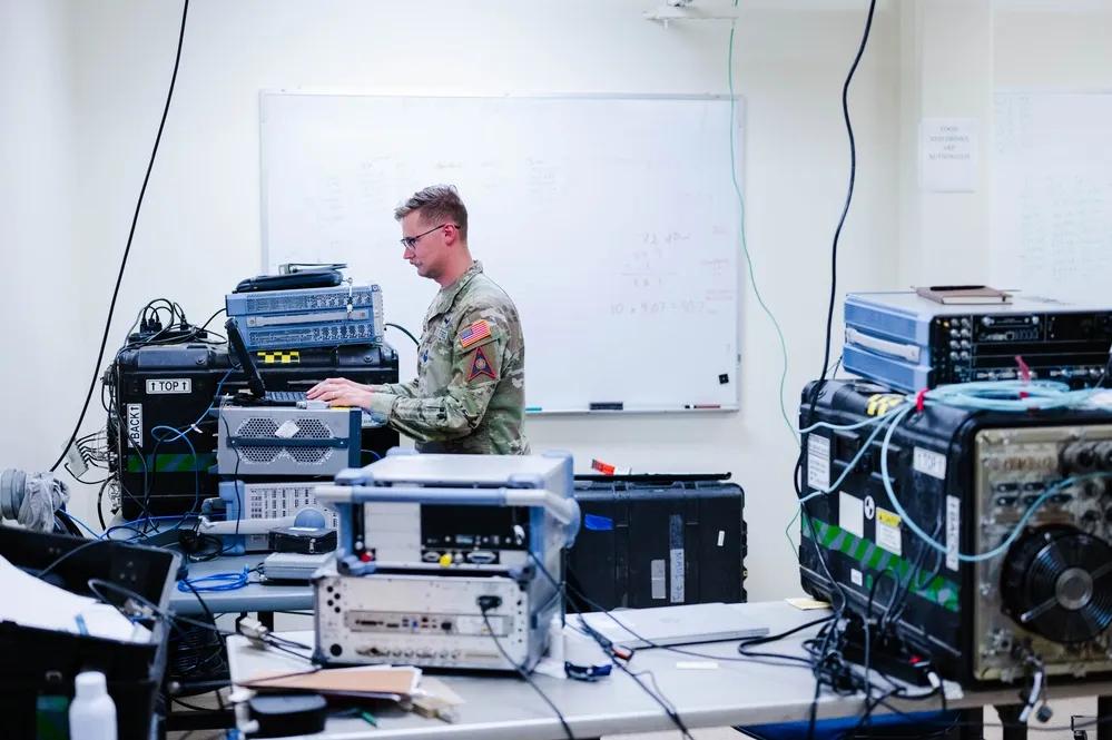 对付美国电磁战必须要有特别的手段。 2025年7月30日,美国第527太空侵略中队的一名太空守护者在夏威夷茂宜岛举行的“坚决空间2025”演习中展开电缆。第527特种空勤中队在“坚决空间2025”中复制了敌方电磁战术、技术和程序,以在有争议的条件下挑战演习参与者。